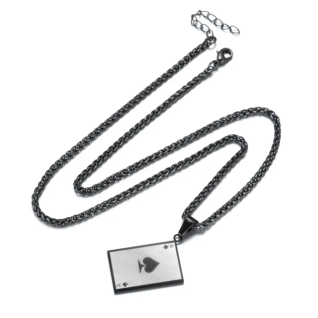 5. U7 Men's Card Poker Pendant Necklace Poker A Necklaces Wheat Chain Necklace Men Rock Hip Hop Jewelry