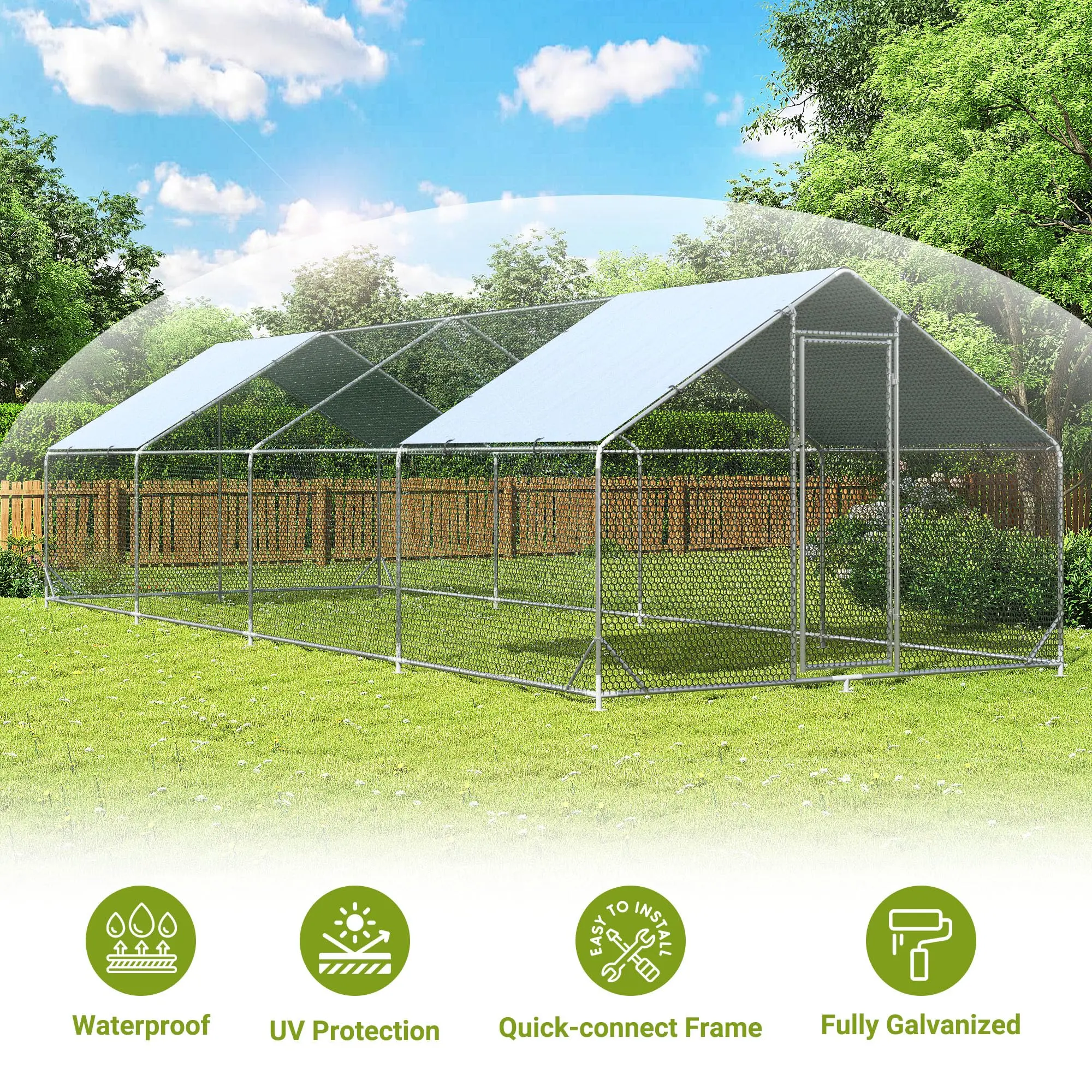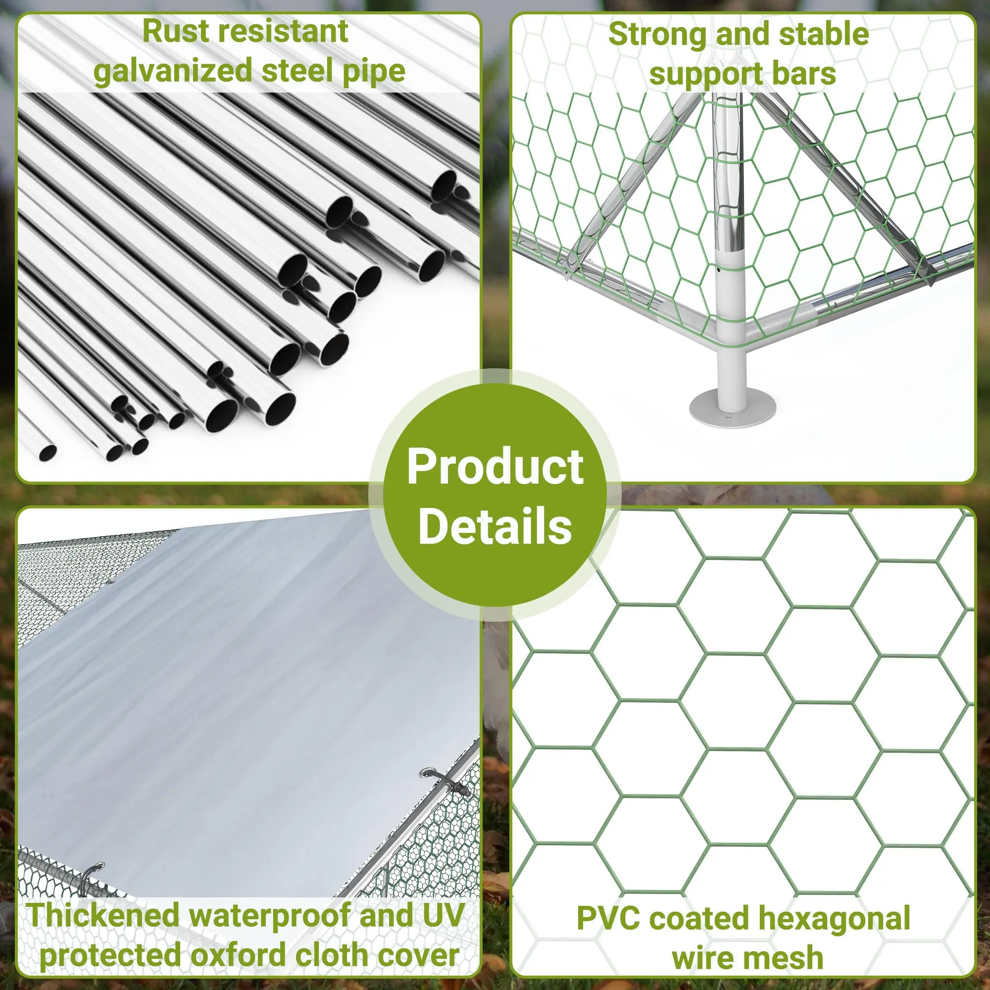 ·Great for Outdoor Use: A durable UV and water-resistant cover can protect your chicken from the weather and outside elements. Featuring galvanized coop, it is protective and resists rust, corrosion and fading, so that the chicken coop run is weatherproof and of great durability.