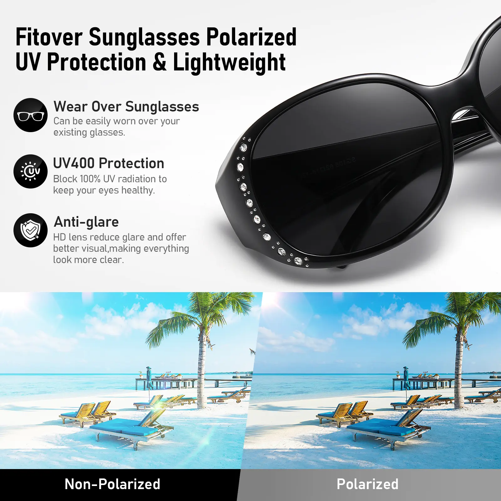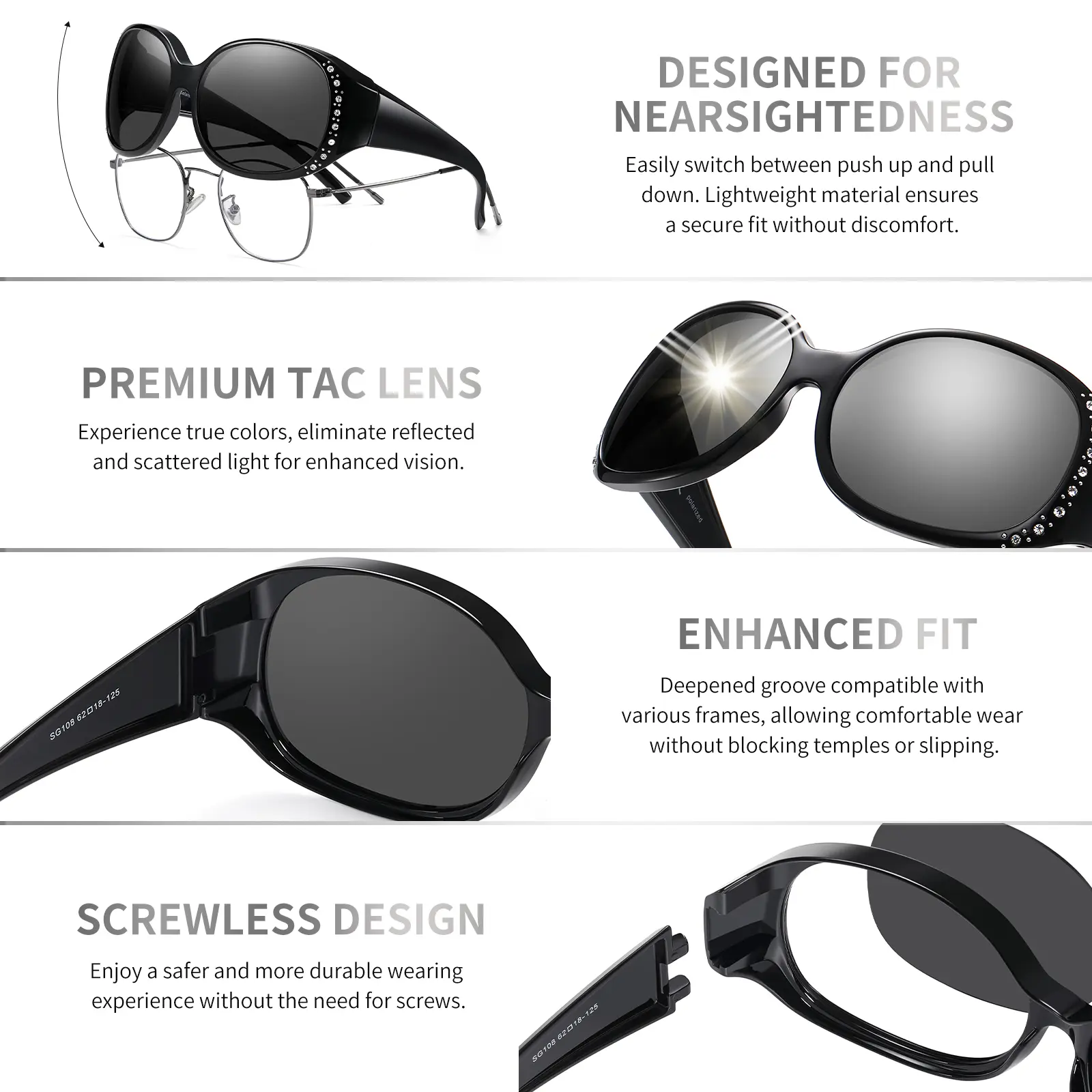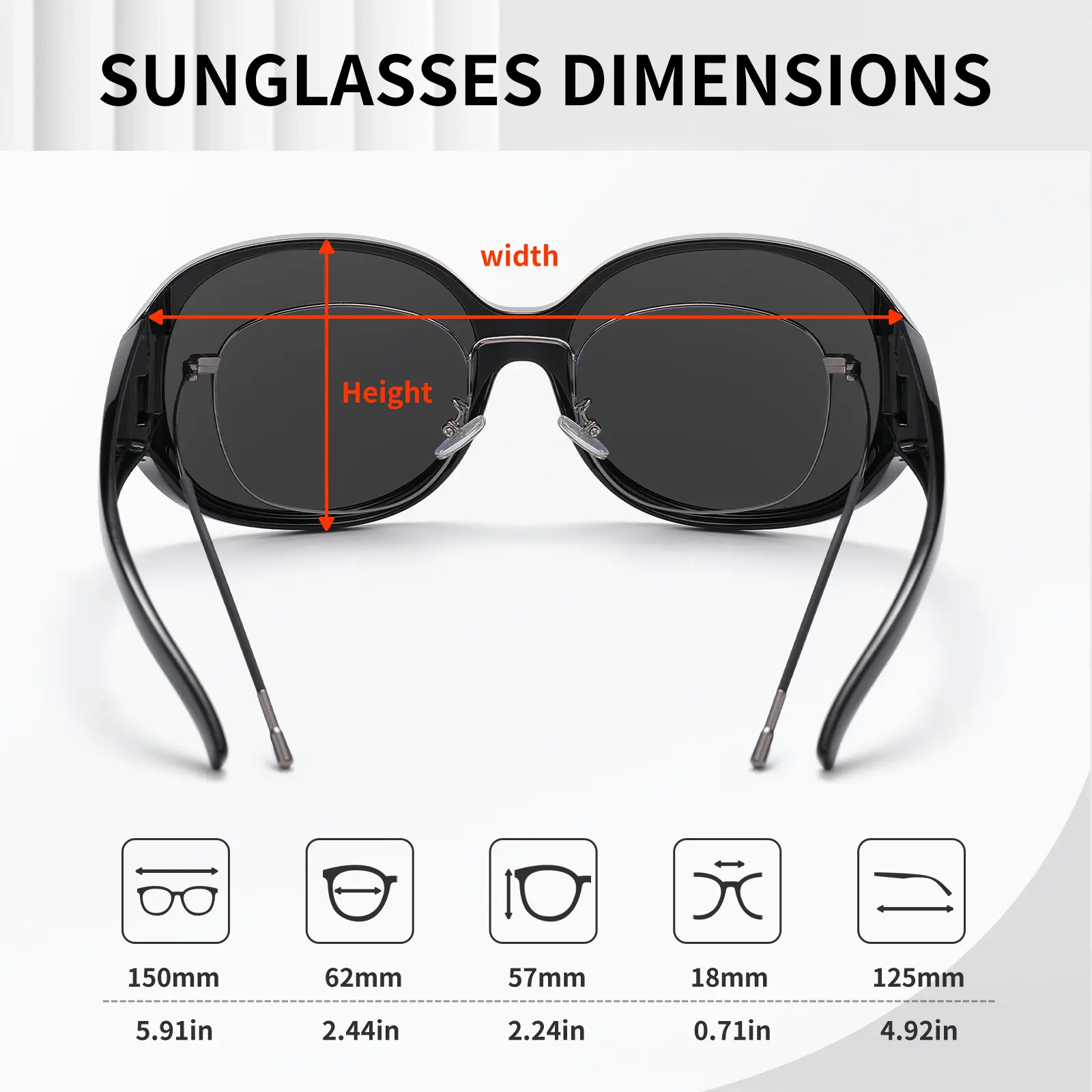 ·SUNGLASSES FIT OVER GLASSES: Specifically crafted for prescription glasses wearers, these polarized sunglasses boast a large frame and wide temples, effortlessly accommodating your existing glasses. Suitable for people who wear contact lenses or with normal vision can also wear them alone.