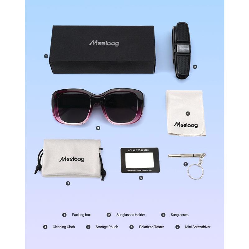 ·[LIGHTWEIGHT SUNGLASSES] The frame is made of TR90 material. More flexible and lighter than plastic. Meeloog women's sunglasses weigh just 0.8 oz.