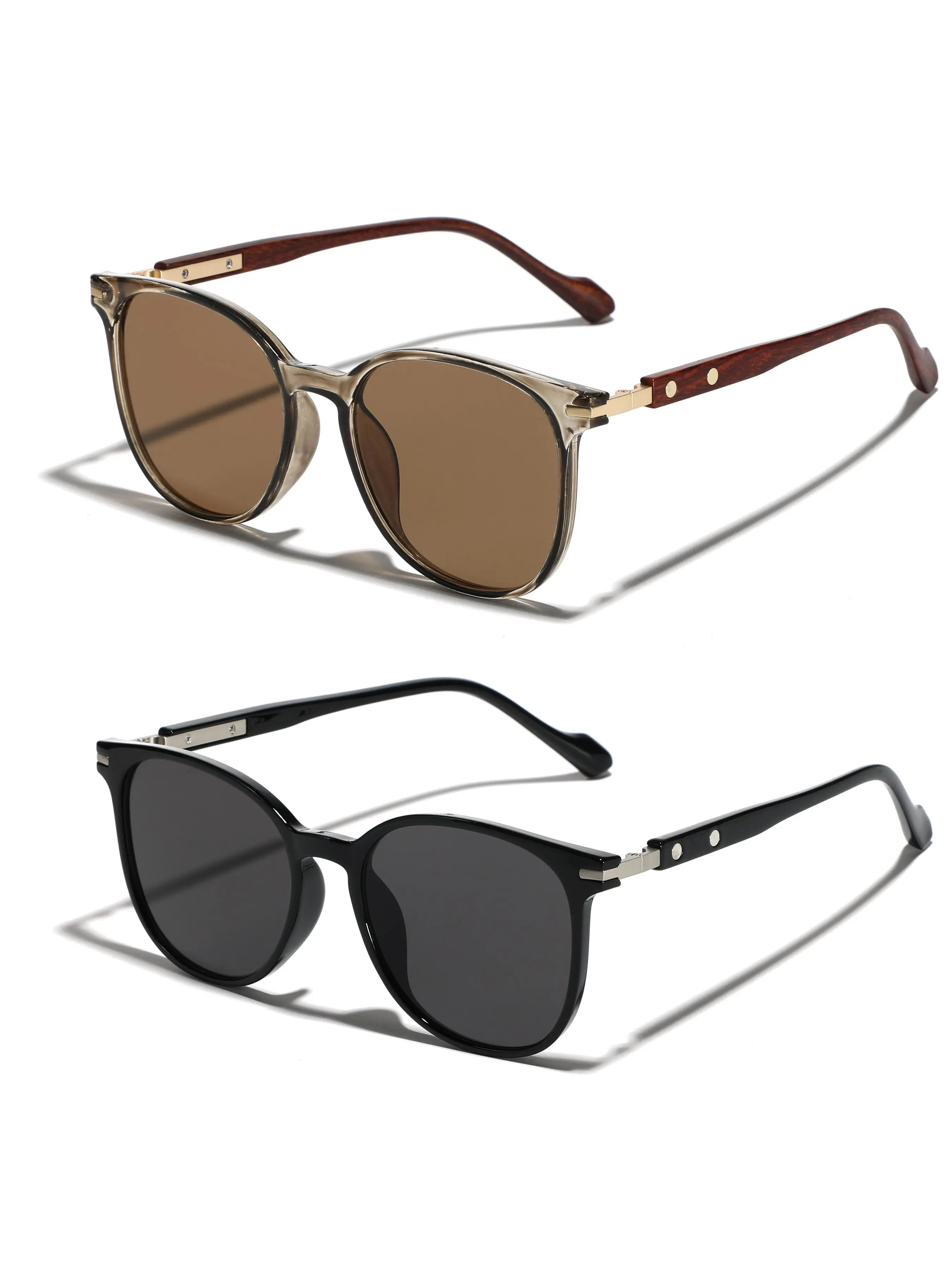 2 Pairs of Summer Fashion Large Frame Sunglasses for Travel, Polarized Sun Protection Glasses for Driving & Vacation, Unisex Travel Accessories