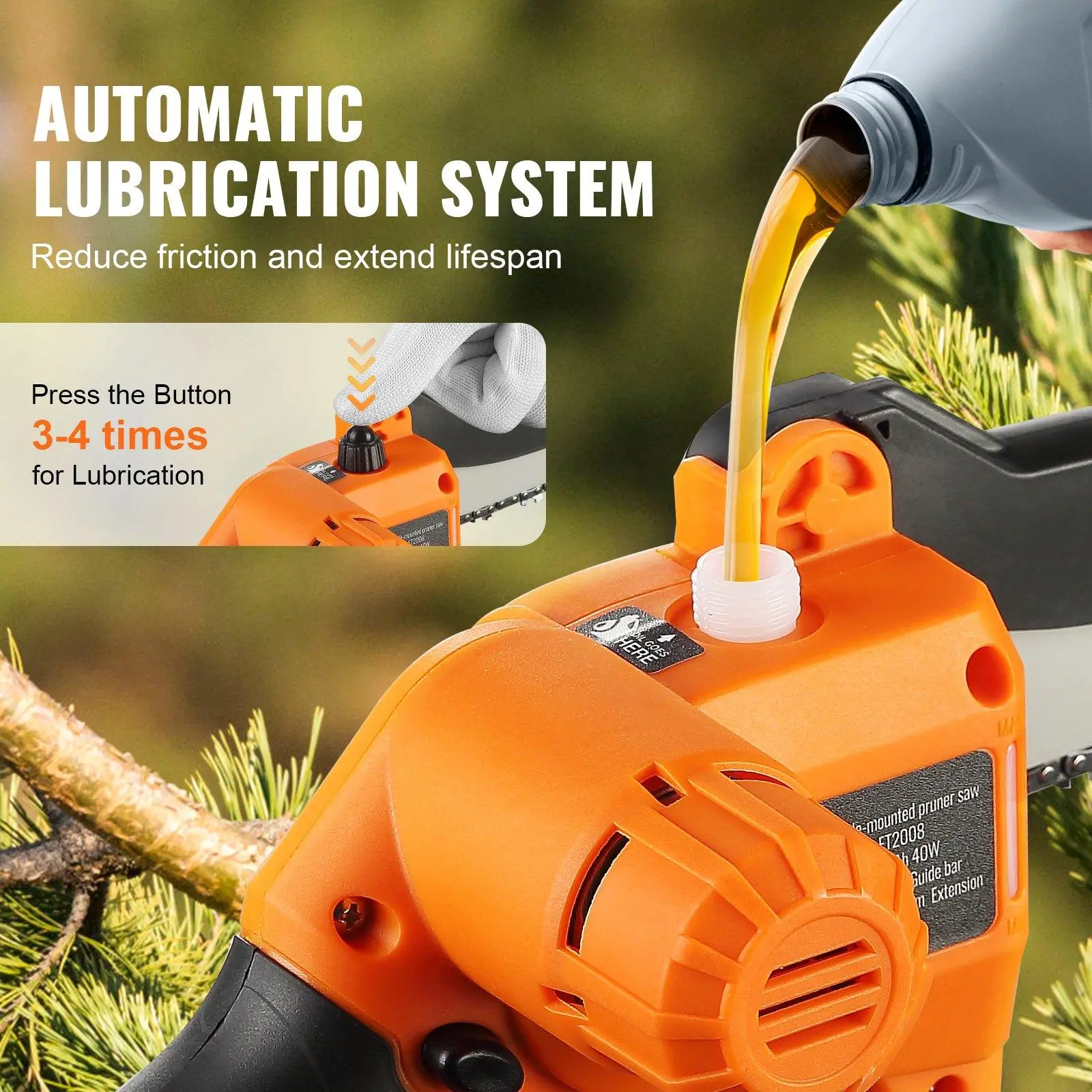 ·Enhanced Performance: With a reliable tension lock, you no longer need to worry about loose or detached chains. This reduces chain wear and fatigue, enabling long-lasting use without frequent chain replacements or repairs. The automatic oiling system ensures proper lubrication of the chain during operation.