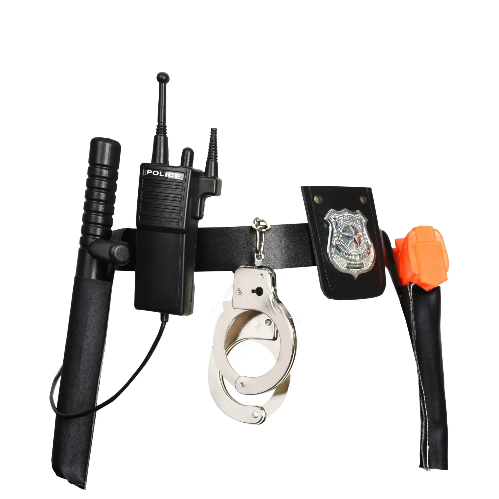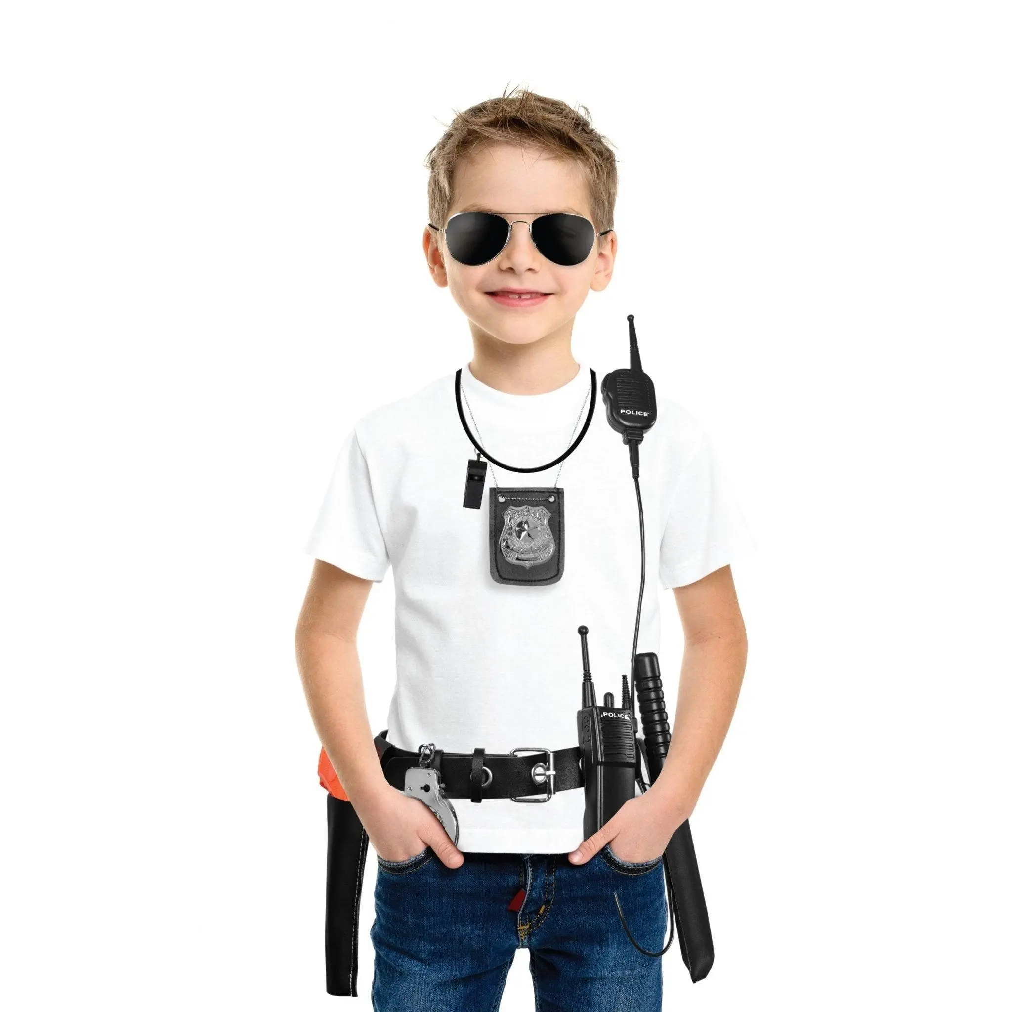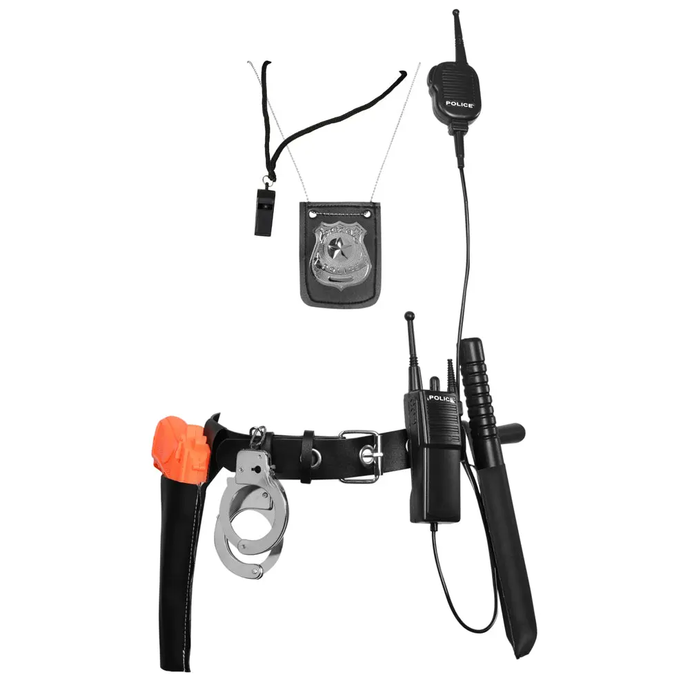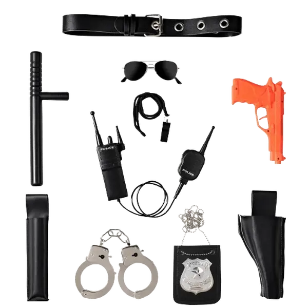 The kit is quite complete, has all you need to dress as a cop. Quality is medium, it won’t break easily but you can tell is a toy.