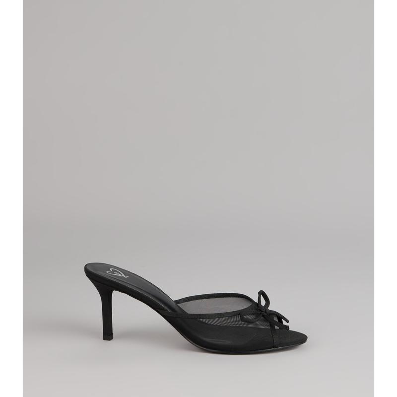 5. Polished Sweet Bow Detail Mesh Mule Heels