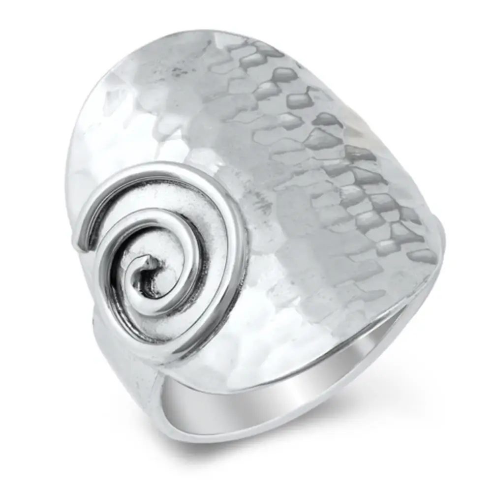 5. Polished Hammered Spiral Statement Ring - 925 Sterling Silver