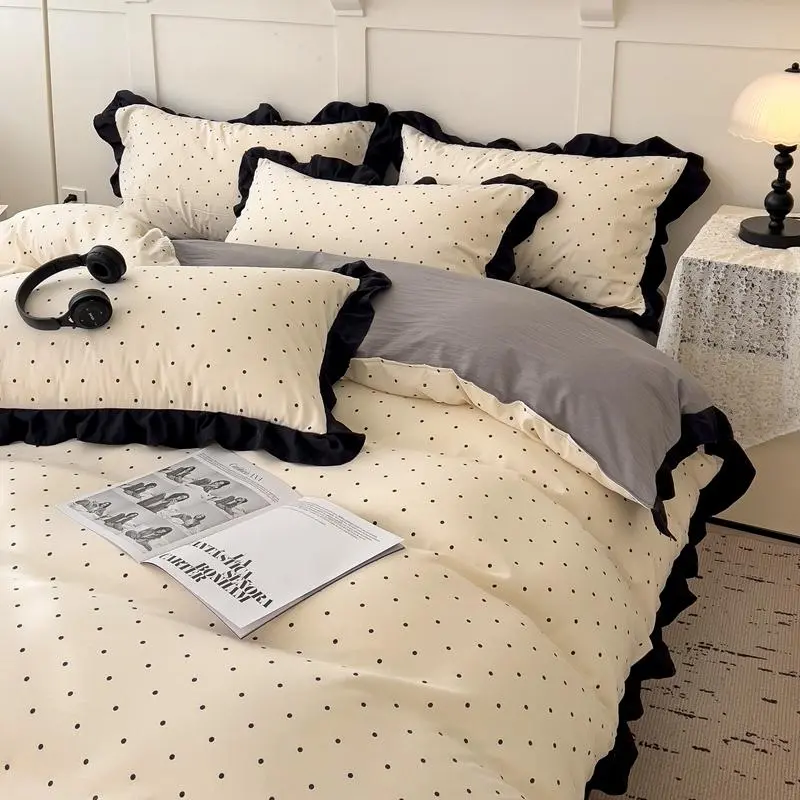 Polka Dot Pattern Bedding Set, 1 Count Bedspread & Pillowcase without Filler, Soft Comfortable Bedding Set, Decorative Bedsheet Sets for Home Bedroom
