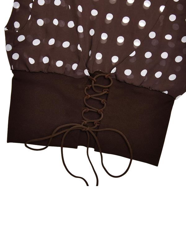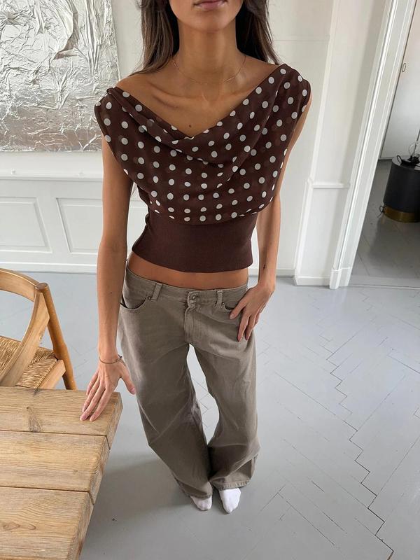 Women's Polka Dot Print Asymmetrical Neck  Crop Tee, Boho Chic Sleeveless, Elegant Fashion Casual  Top for Daily Outdoor Wear, Women Clothing for Summer