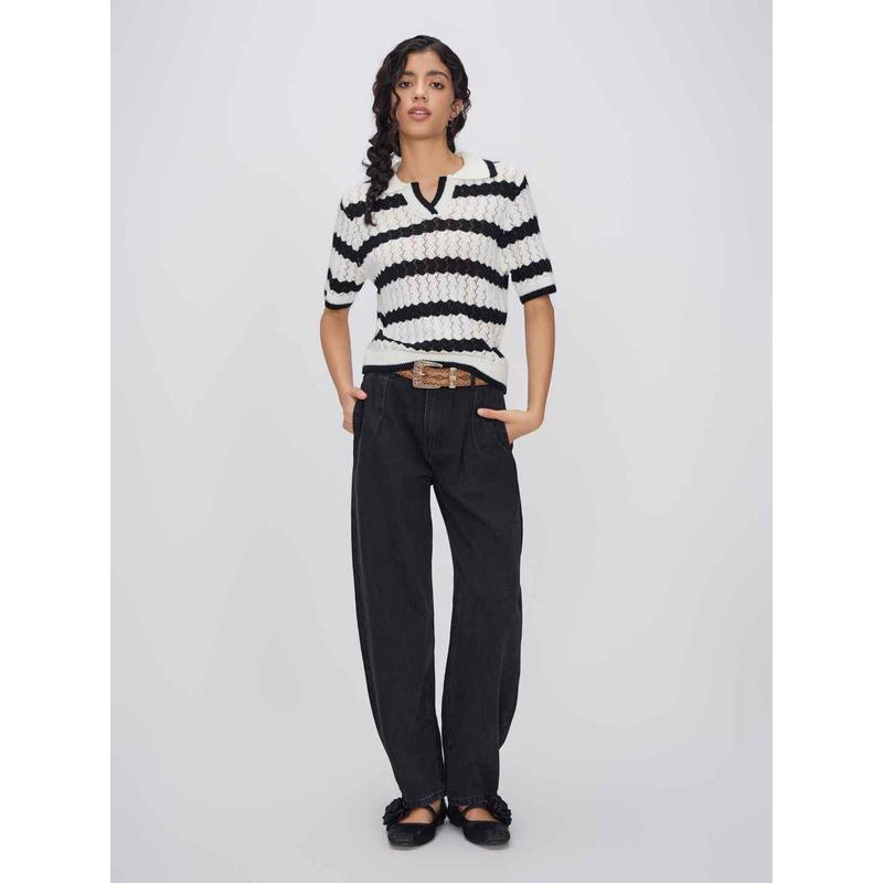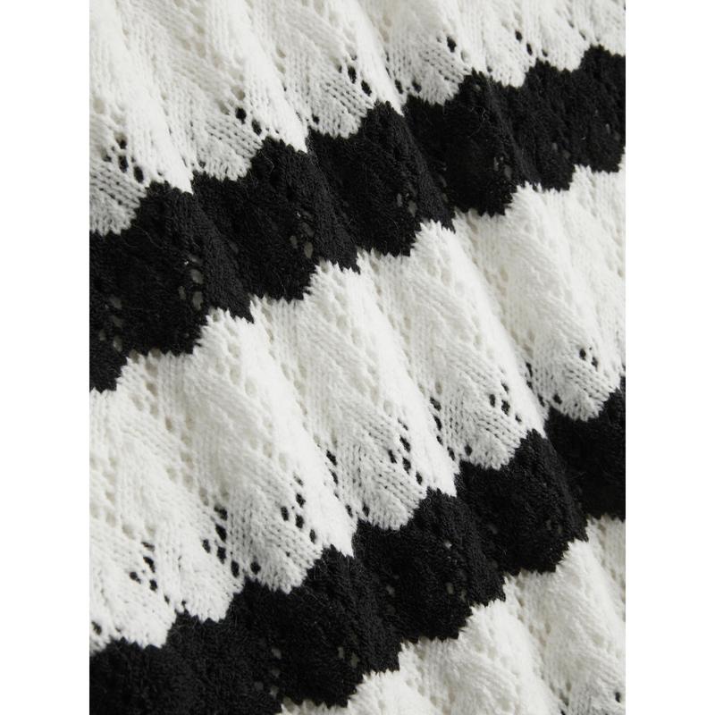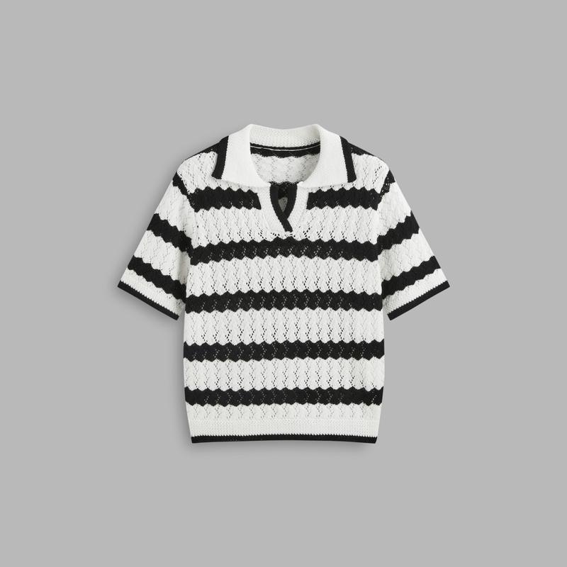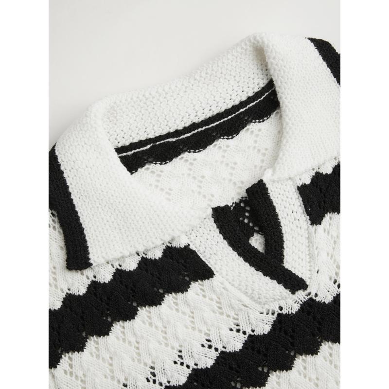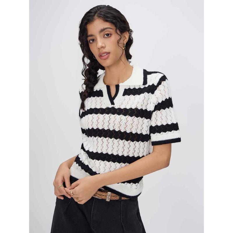 5. Cider [size 2-10] French Riviera Vacation Polo Striped Hollow Out Knitted Short Sleeve Top