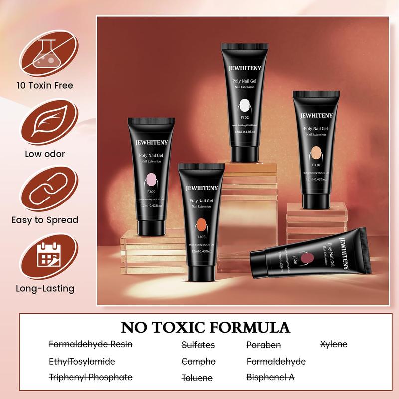 ·Wide Range Of Applications And The Perfect Gift: JEWHITENY poly nail gel kits is perfect for creating a variety of stunning nail designs with rhinestone nails,dry flower and glitter , as well as nail art on press-on nails. This builder nail gel is suitable for creating different nail extension shapes, such as square, oval, coffin, and French nails.This poly extension gel nail kit is the perfect gift for all nail lovers.