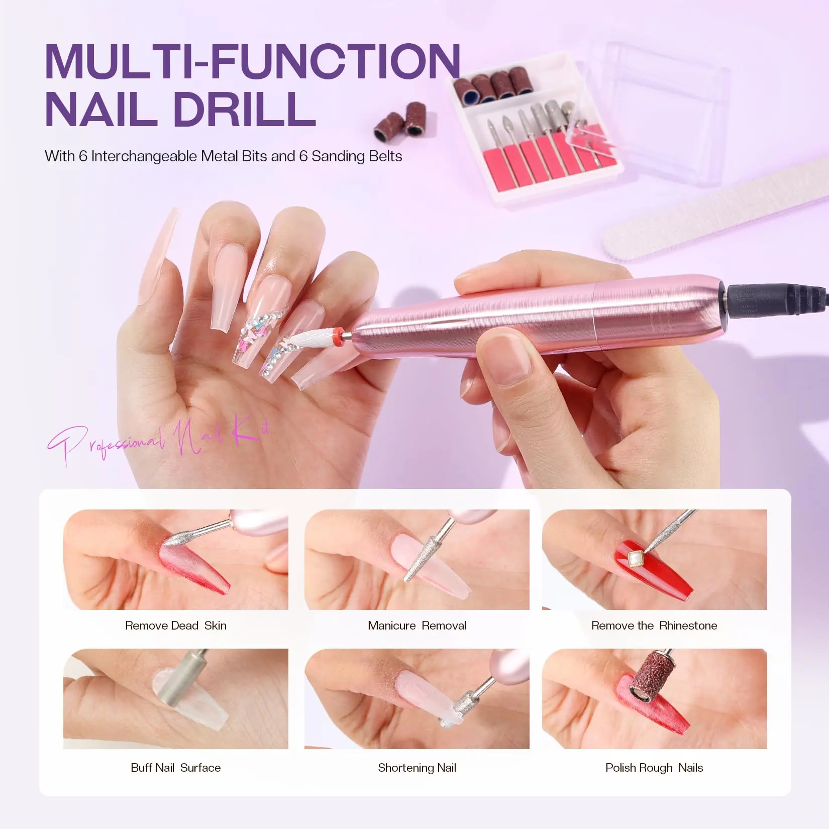 ·MULTIFUNCTIONAL ELECTRIC NAIL DRILL - The Morovan Poly Gel Nail Kit includes an electric nail drill with 6 interchangeable metal drill bits and 6 sanding bands. A comprehensive set of tools for sanding, sculpting, cutting and buffing nails, it is powerful, portable and easy for beginners to use for your daily nail care needs.