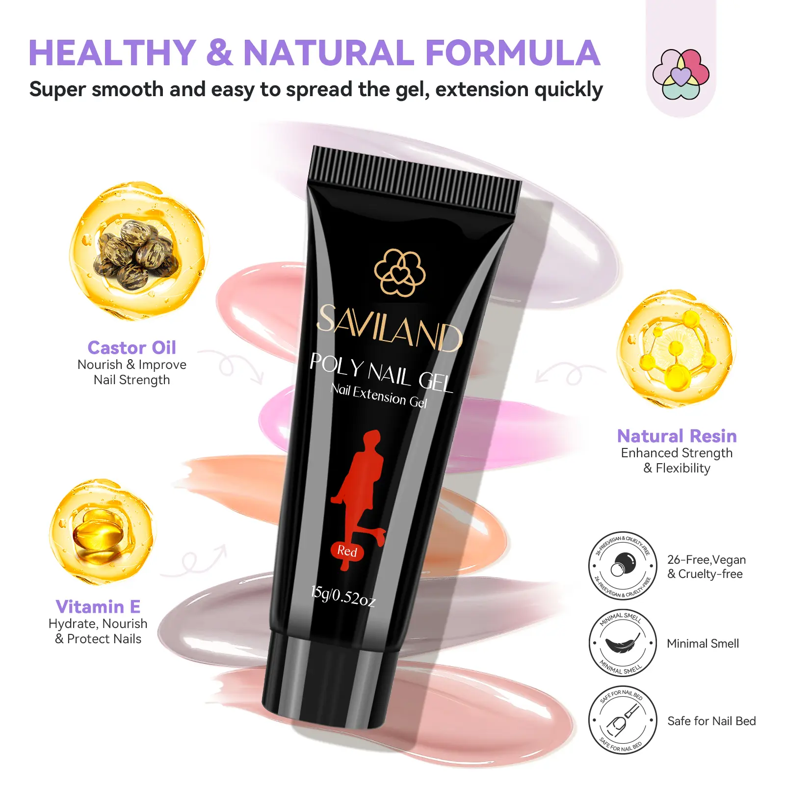 Plant-Based & Natural Formula – Formulated with natural resins, SAVILAND Poly Nail Gel is enriched with castor oil and vitamin E. It’s gentle on sensitive nails, helps moisturize and strengthen, promotes healthier growth, and has a lower odor than traditional poly gels.