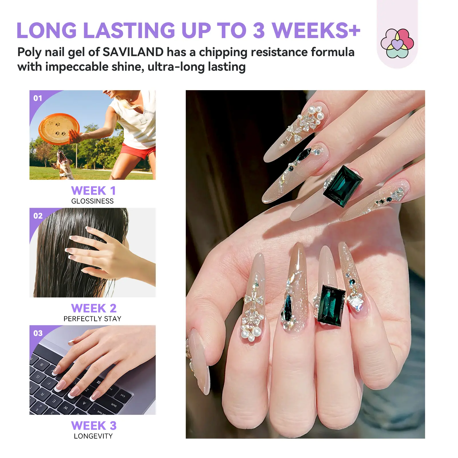 Quick Extension & Long-Lasting – Made from durable resin, SAVILAND Poly Nail Gel allows you to build strong nail extensions in minutes. Use it with the included Foundation Gel and Top Gel to boost durability and ensure your nails last over 3 weeks.