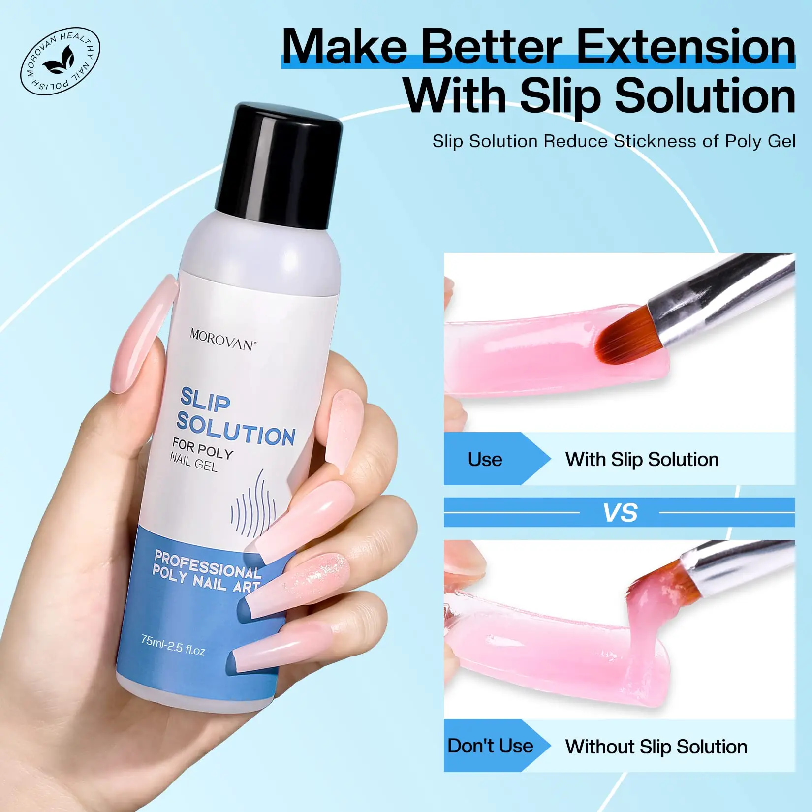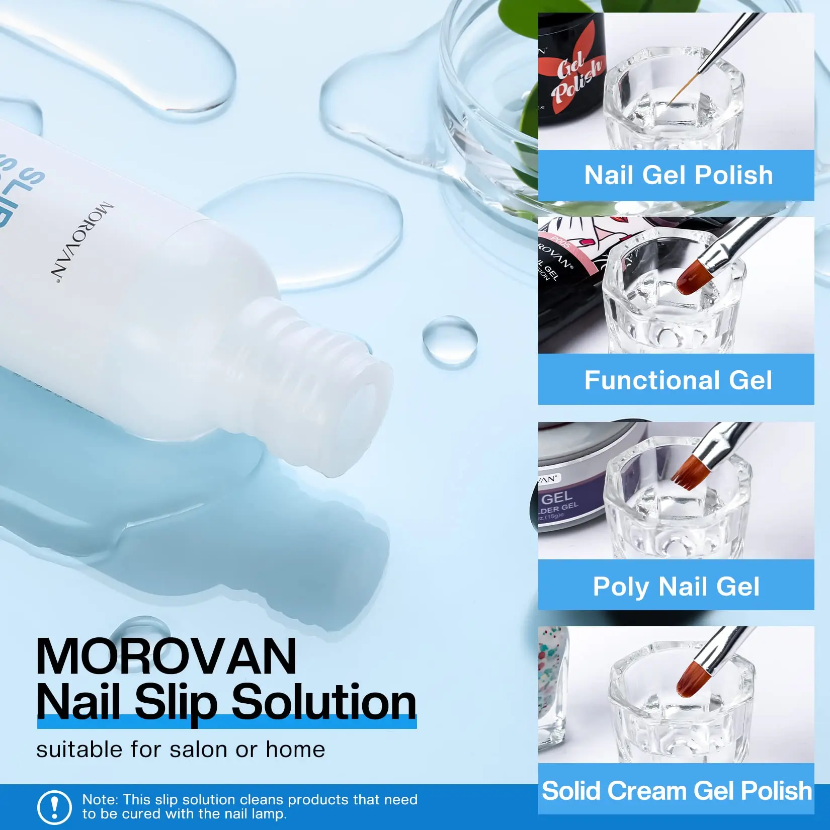 ·All In One Slip Solution: Morovan slip solution for poly gel nails come with brush, nail tips, nail clip, crystal cup to make it easier for you to use this nail slip solution.This poly gel slip solution is suitable for all nail types, artificial nails, UV gels nails, acrylic nails, natural nails, etc.