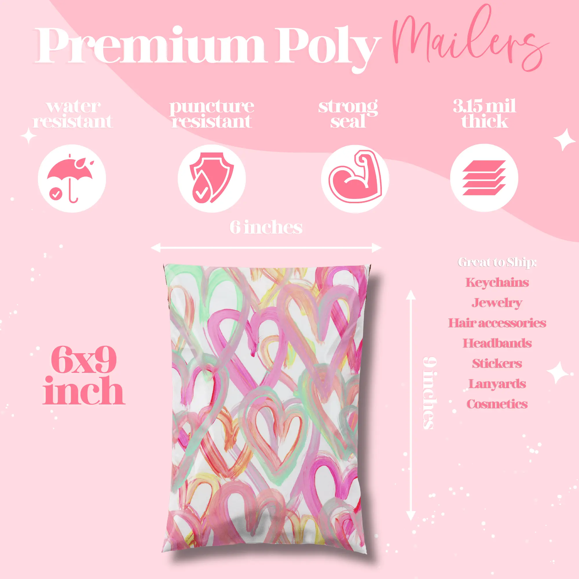 Versatile and Durable: Whether you're shipping clothing, accessories, or handmade goods, our boutique poly mailers are up for the task. Made from high-quality materials, these mailers are tear-resistant and provide a protective barrier against the elements, ensuring your items reach their destination securely. Our poly mailers are 3.15 mil thick which is 50% thicker than most poly mailers.ย