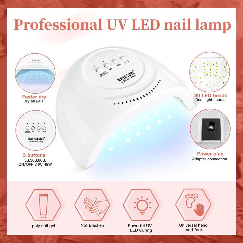 [PREMIUM 48W UV LED NAIL LAMP] -High-quality LED beads with 50,000+ hours lifespan test, longer service life last up to 5 years. The nail extension poly gel nail kit can be cured fastly with this premium nail dryer. The Nail lamp suitable for all kinds of poly nail gel, gel nail polish, nail prep dehydrator, nail primer, base coat and top coat ect. Average drying time is shortened by more than 50% with this Powerful nail light.