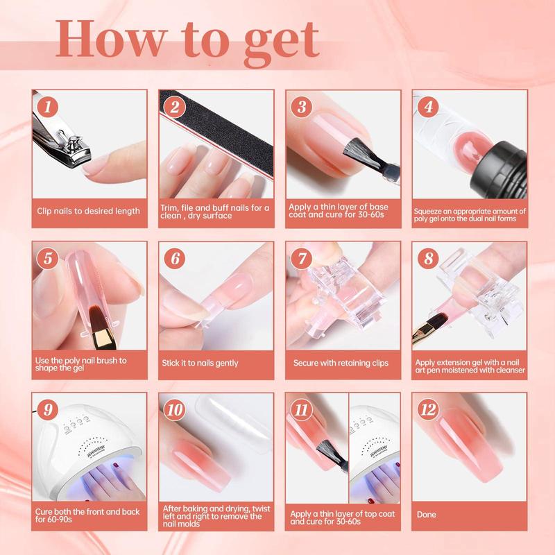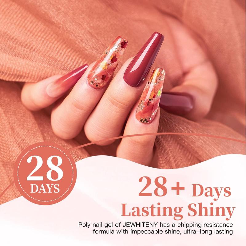 [HEALTHY,NATURAL,FLEXIBLE]:JEWHITENY poly gel made with non-toxic ingredients keeping your nails healthy with a low odor formula!superior to other nail extension products, and fits your nails seamlessly.The new upgraded formula makes your lengthened nails as flexible, strong and lightweight as natural growing nails.Double the beauty, but without the extra burden.