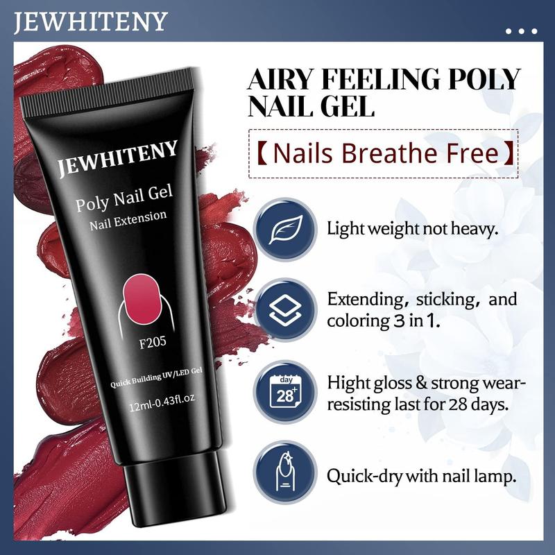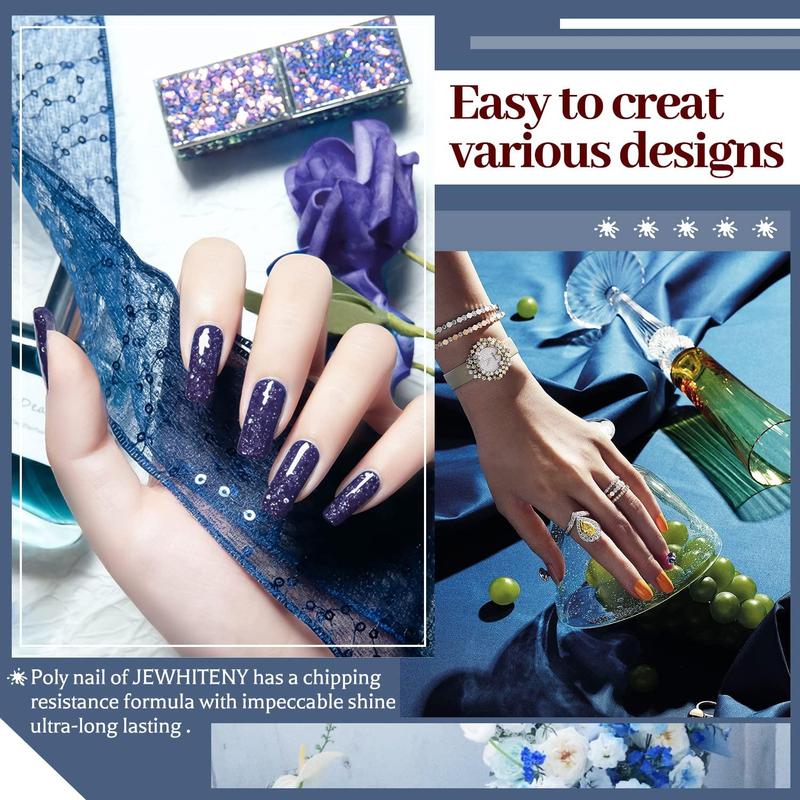 ·[HEALTHY,NATURAL,FLEXIBLE]:JEWHITENY poly gel made with non-toxic ingredients keeping your nails healthy with a low odor formula!superior to other nail extension products, and fits your nails seamlessly。The new upgraded formula makes your lengthened nails as flexible, strong and lightweight as natural growing nails.Double the beauty, but without the extra burden.