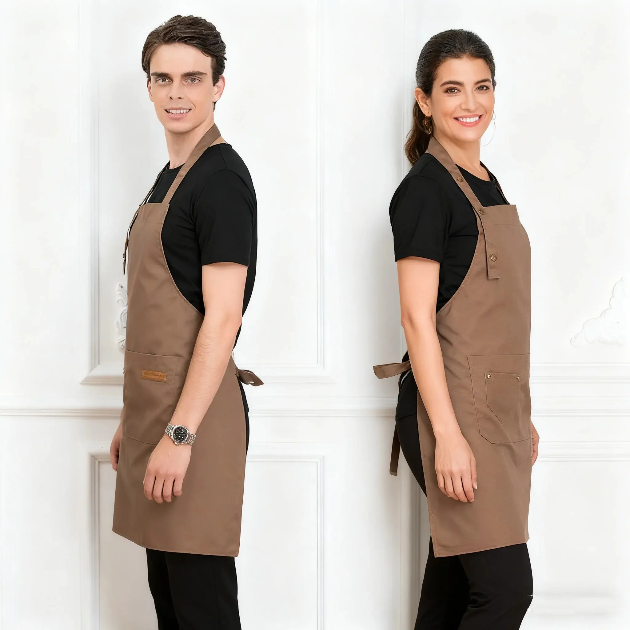 Polyester 2 Pocket Adjustable Neck Apron Home Cooking Coffee Shop Catering Service Attendant Work Apron