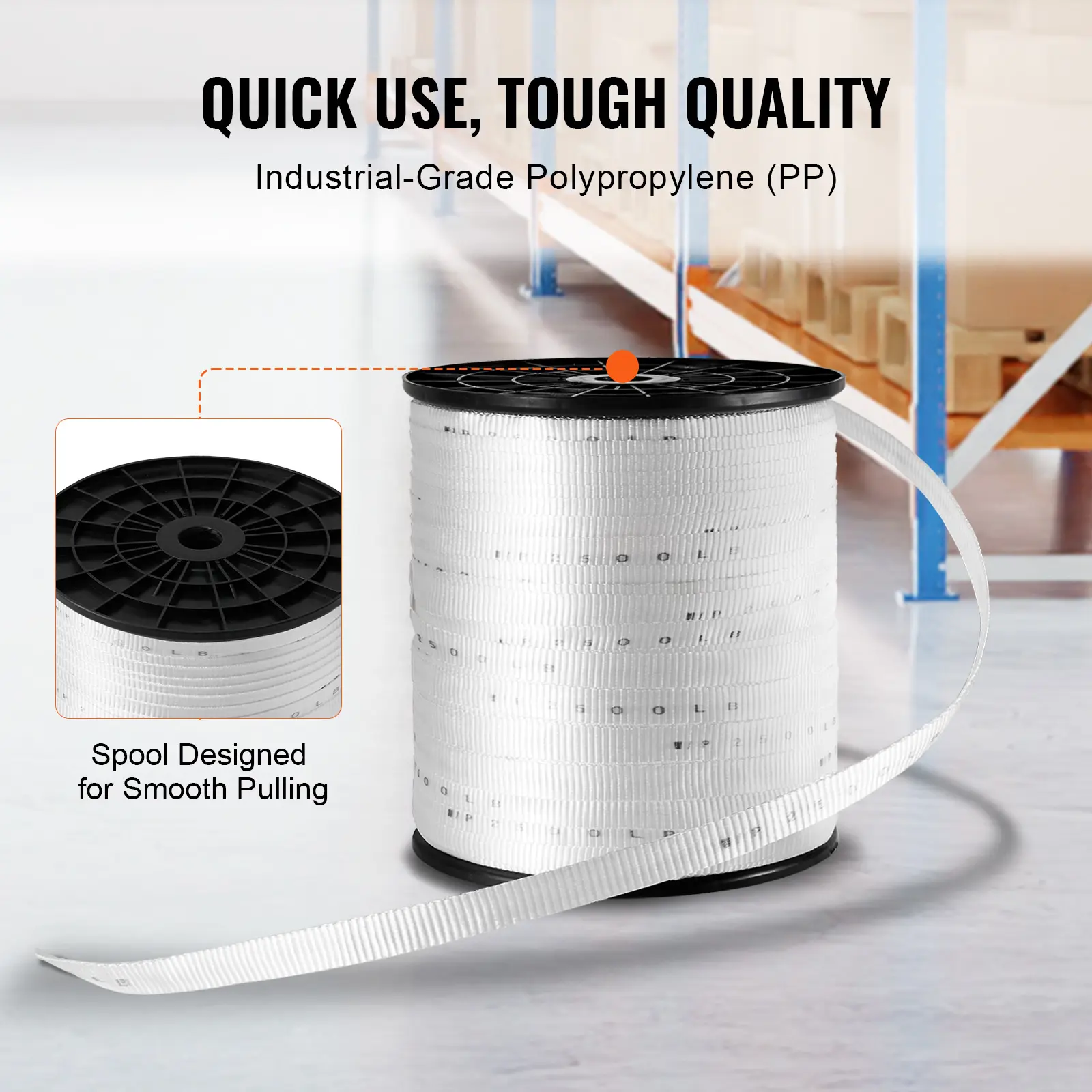 5. VEVOR Polyester Pull Tape, TikTokShopBlackFriday, 3/4" x 1053' Mule Tape Flat Rope, 2500 lbf Tensile Capacity, Printed Webbing Cable Pulling Tape for Packaging, Gardening, Commercial Electrical, Conduit Work, White