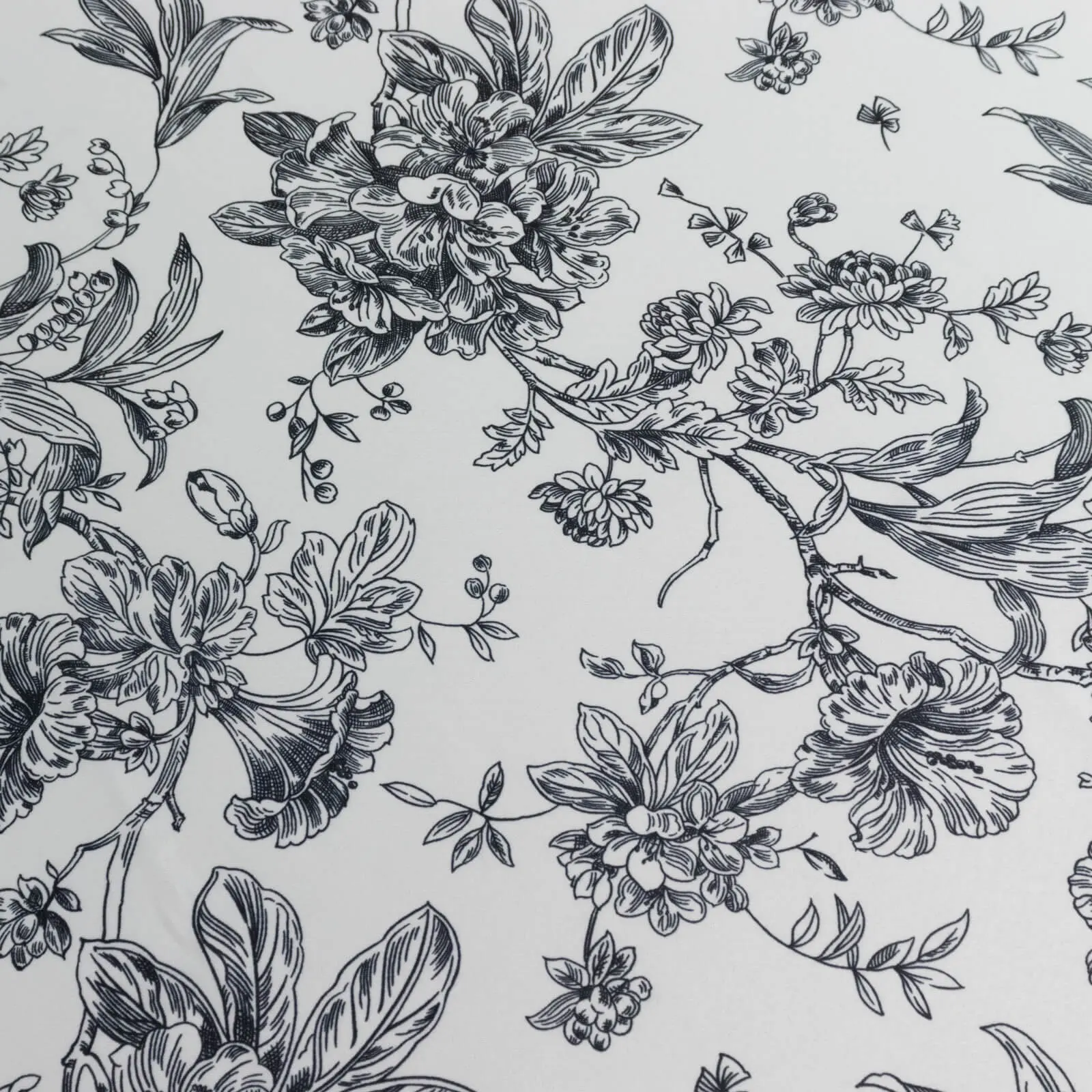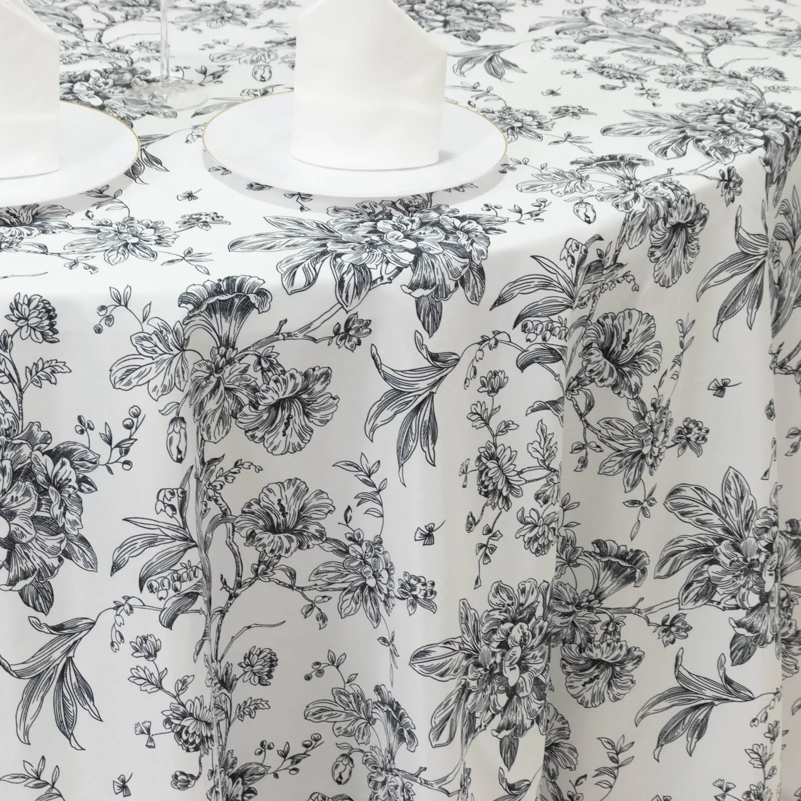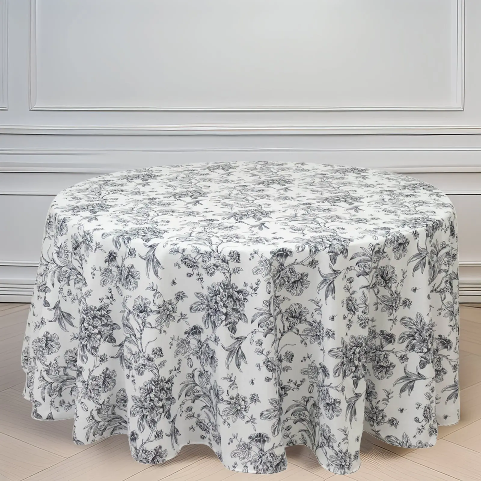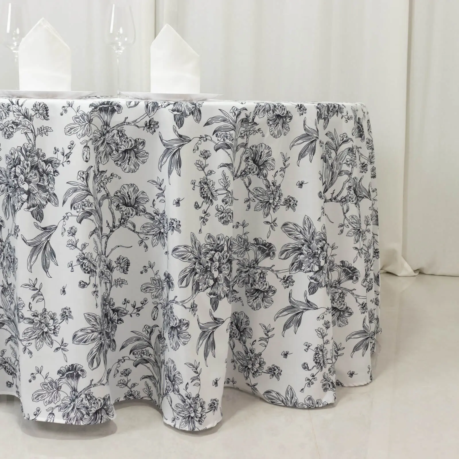 Polyester Round Tablecloth 120" White with Black French Toile Pattern - Sophisticated Table Cover for Chic Weddings & Events