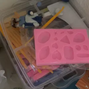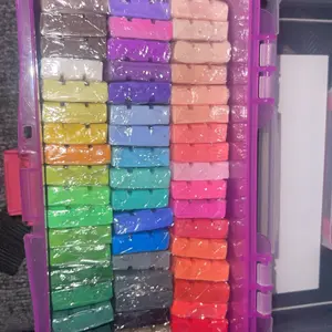 One plastic storage box set, Contains 46 pcs polymer clay in single PE bags. Comes with creative modeling tools and accessories.Includes 5 pcs small boxes of glitter powder flakes that can be mixed into polymer clay to create glitter clay. There is also a polymer clay roller available for flattening polymer clay.