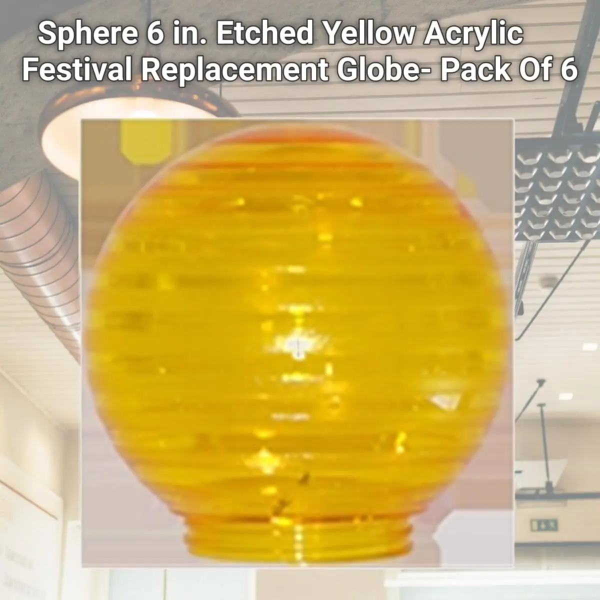 Polymer Products Sphere 6 in. Etched Yellow Acrylic Festival Replacement Globe- Pack Of 6