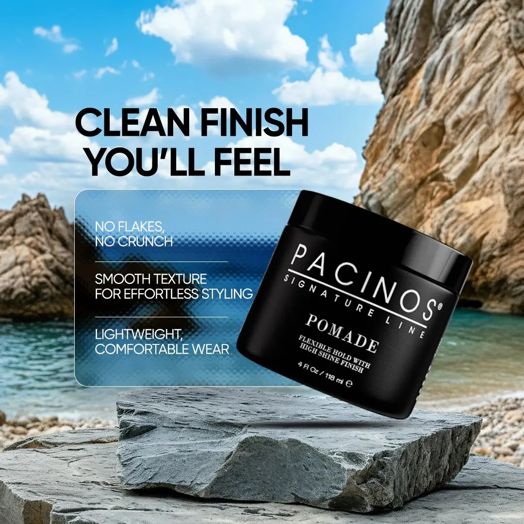 Pacinos Pomade is your go-to solution for achieving perfectly styled hair, regardless of hair type—straight, wavy, or coarse. With its flexible yet durable hold, you can easily shape and maintain your look, from slick and polished to textured.