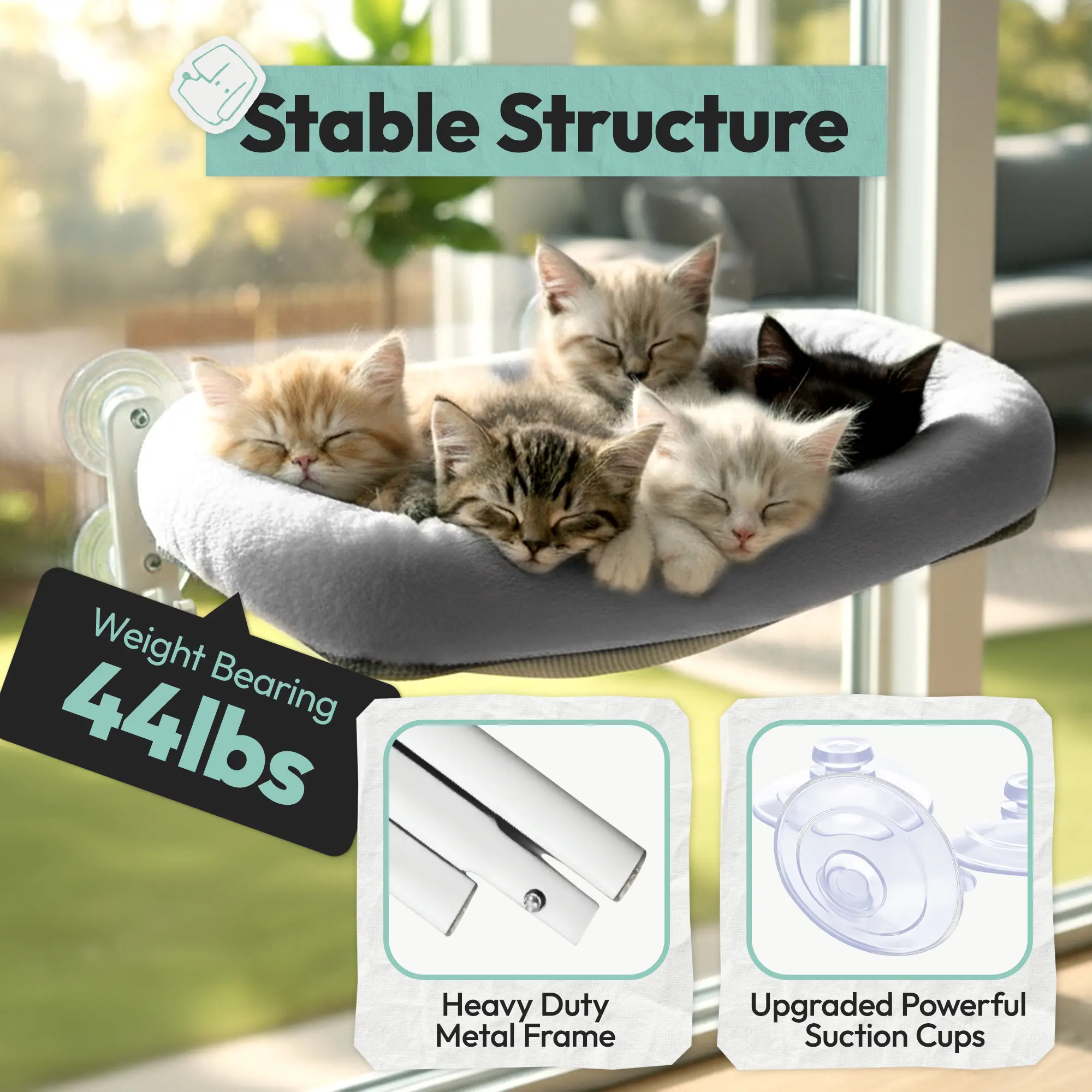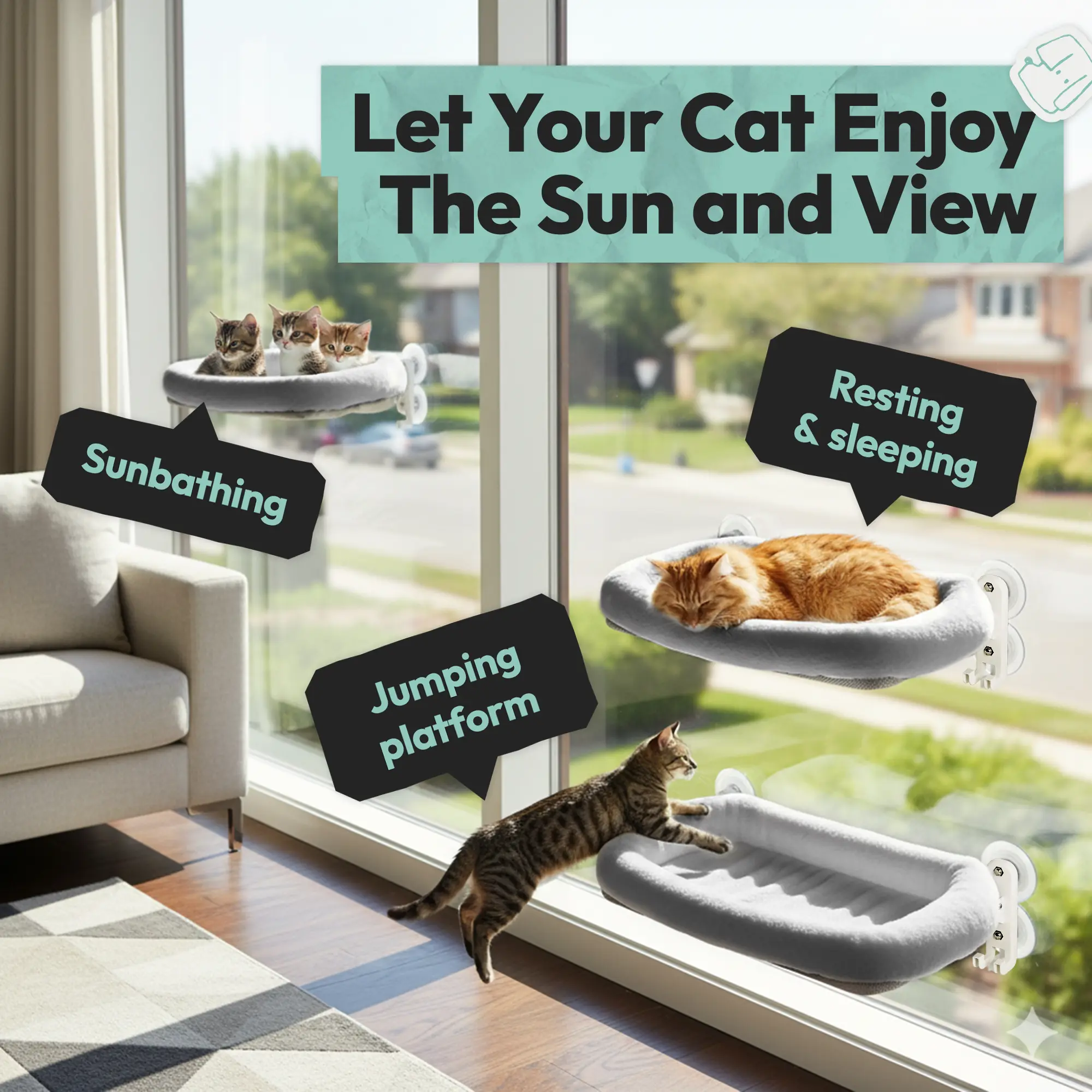 Gives your cat the ideal elevated spot to nap, sunbathe, and enjoy outdoor views. Promotes relaxation, mental stimulation, and overall happiness for indoor cats.
