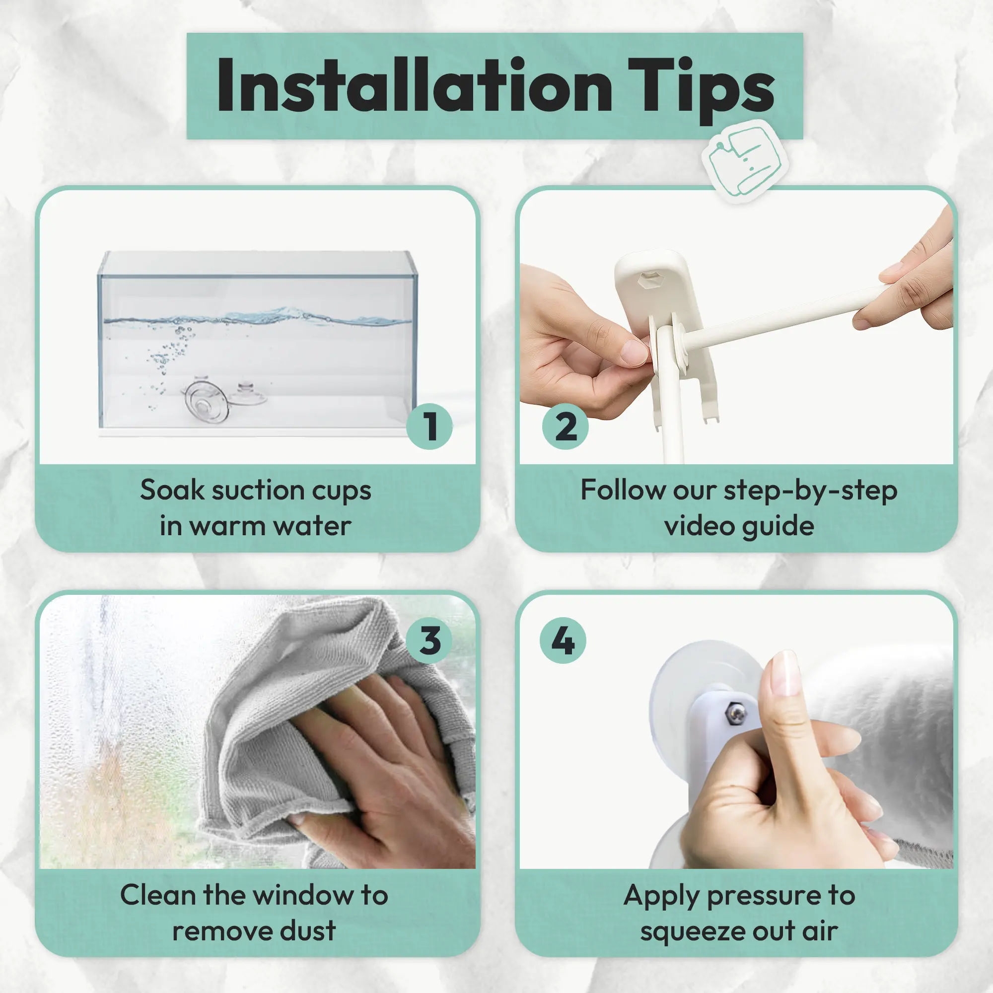 2:Clean and dry the suction cups before installation.