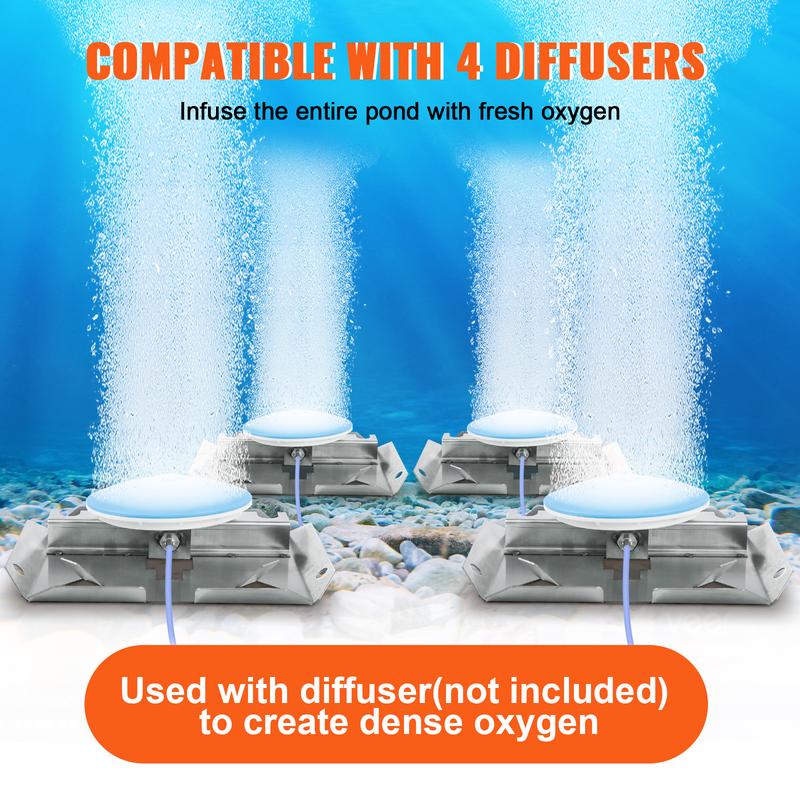 5. VEVOR Pond Aerator, 550W Power, 5.2CFM for Up to 3 Acre 50' Lake, Pond Aeration Kit Includes 3/4 HP Compressor & Timer & Valves, Air Compressor for Deep Water Oxygen Circulation, for Pond, Lake