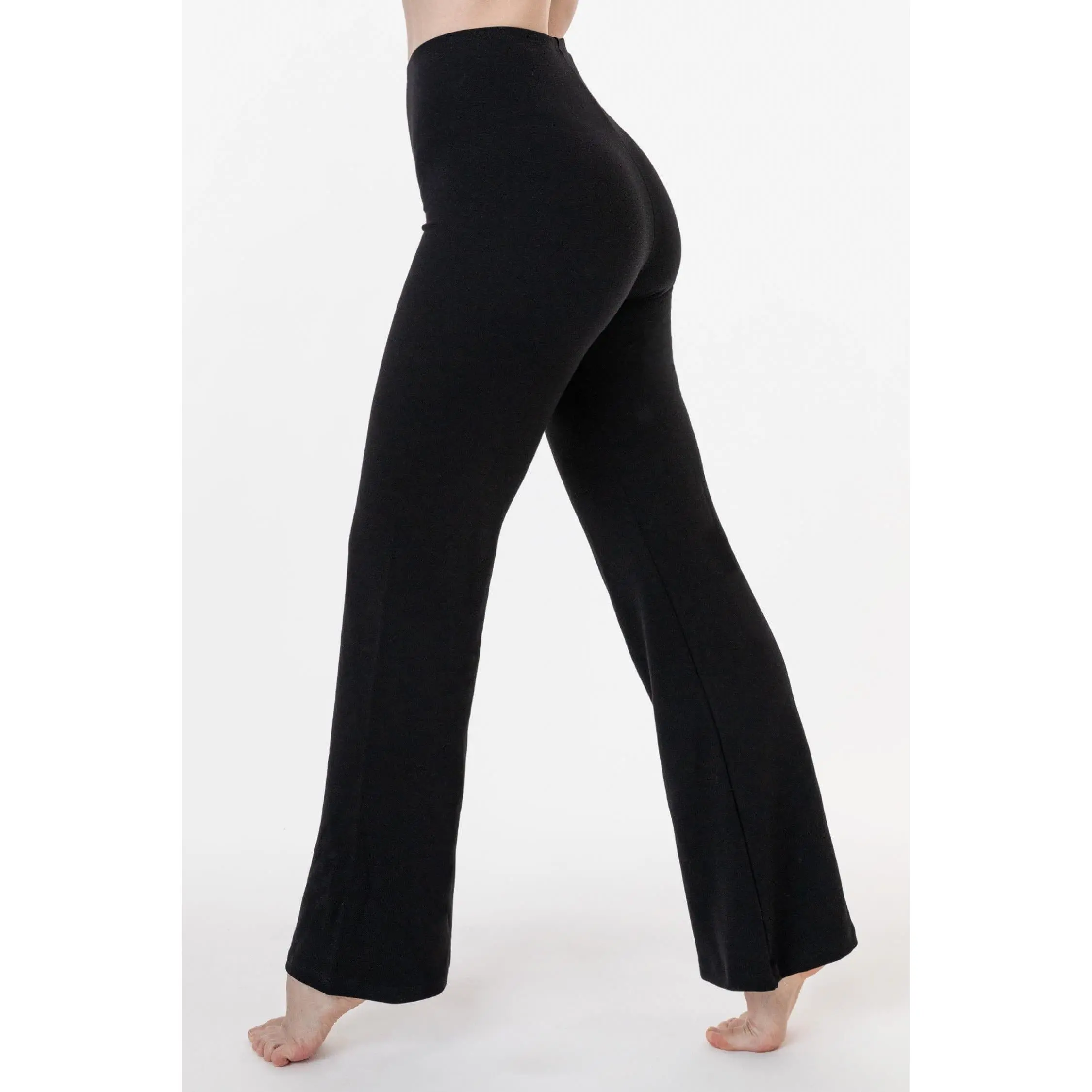 The Ponte Flared Legging is our updated take on the classic jazz pant. These pants are made of a smooth, heavyweight Ponte fabric that stretches and flatters your curves. These leggings are high waisted, fitted through the thigh and flare slightly towards the ankles. We've given this style a half inch elastic waistband for a seamless look without any extra bulk. This versatile legging can be styled like a trouser with your favorite mid-length blouses and cropped sweaters and finished with a strappy heel or can be paired with our cotton spandex basic crop tops and bodysuits for an everyday, casual, dancewear-inspired look.Made in Los Angeles, Calif.Our experienced sewers earn up to $25 an hour and no less than $17.87; additionally workers have healthcare benefits for less than $15 per week, a 401k plan, paid sick days, subsidized bus passes and favorable overtime benefits.• Ponte di Roma• Made in Los Angeles, Calif.• Wash Cold• Pre-laundered for minimal shrinkage• 60% Rayon / 35% Nylon / 5% Elastane