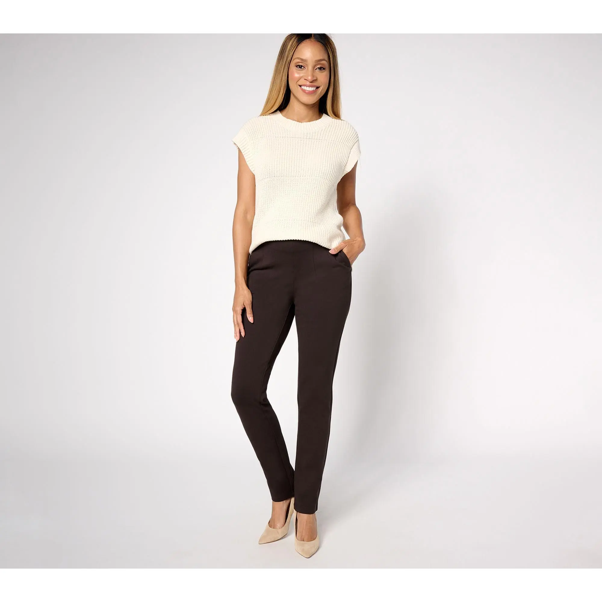 Ponte pants do a body good. Especially if they're designed by Kim Gravel. These year-round pull-ons are your comfort-all-day chameleon, pairing as easily with cotton tops and cashmere sweaters for casual weekend jaunts as they do with silk blouses and structured jackets for in-office hours.