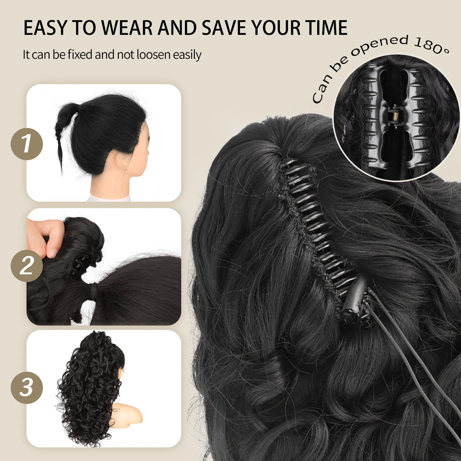 ·[Easy to wear]: This ponytail features a newly upgraded claw gripper design. The clip is anti-scratch and non-slip, and it is stable to wear. The wearing process is also very simple, and it can be completely put on in a few minutes.