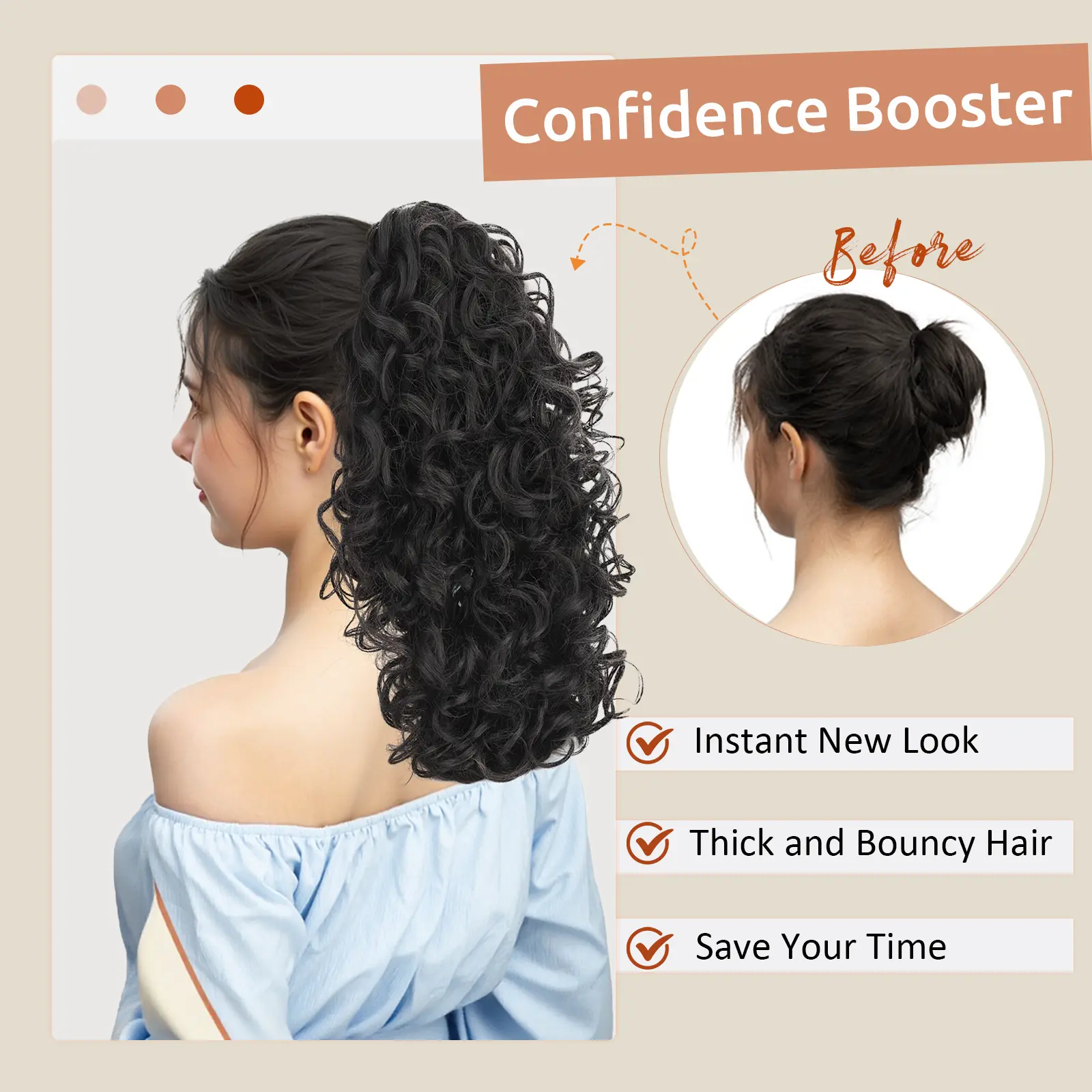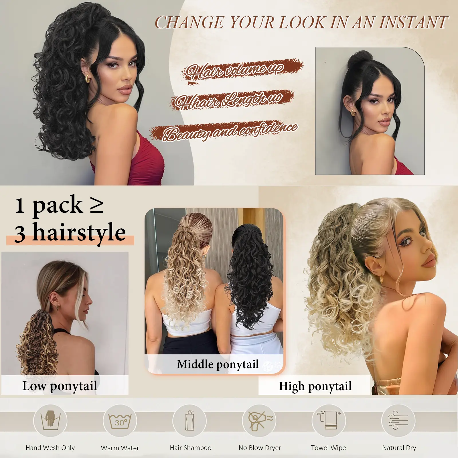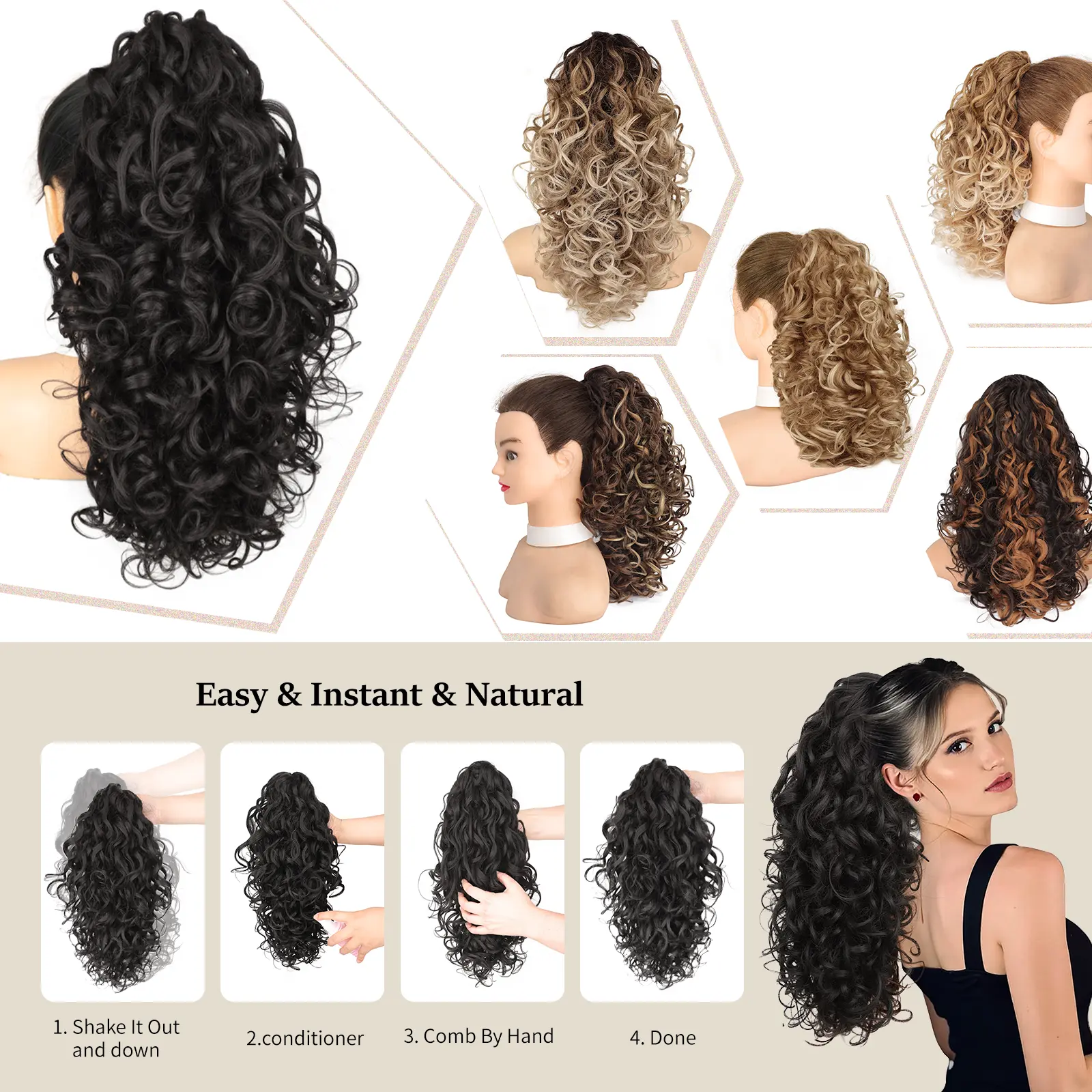 ·[Warm Tips]: If the ponytail extension is tangled you are not something to worry about, just spray it with water/mousse, separate it with your fingers or comb and it will be fine, Very easy to solve.