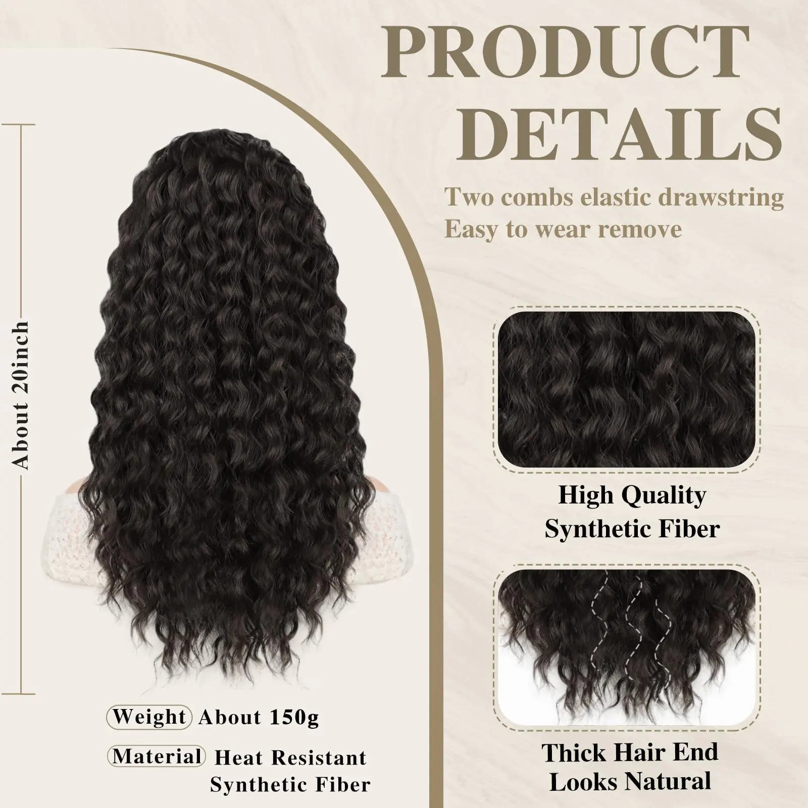 ·【Ponytail Detail】: The drawstring ponytai extension is 145~180g, which is more suitable for most people.The curly ponytail extension is made of high quality heat-resistant synthetic fibers which looks more natural, no smell, and softer than other fibers.