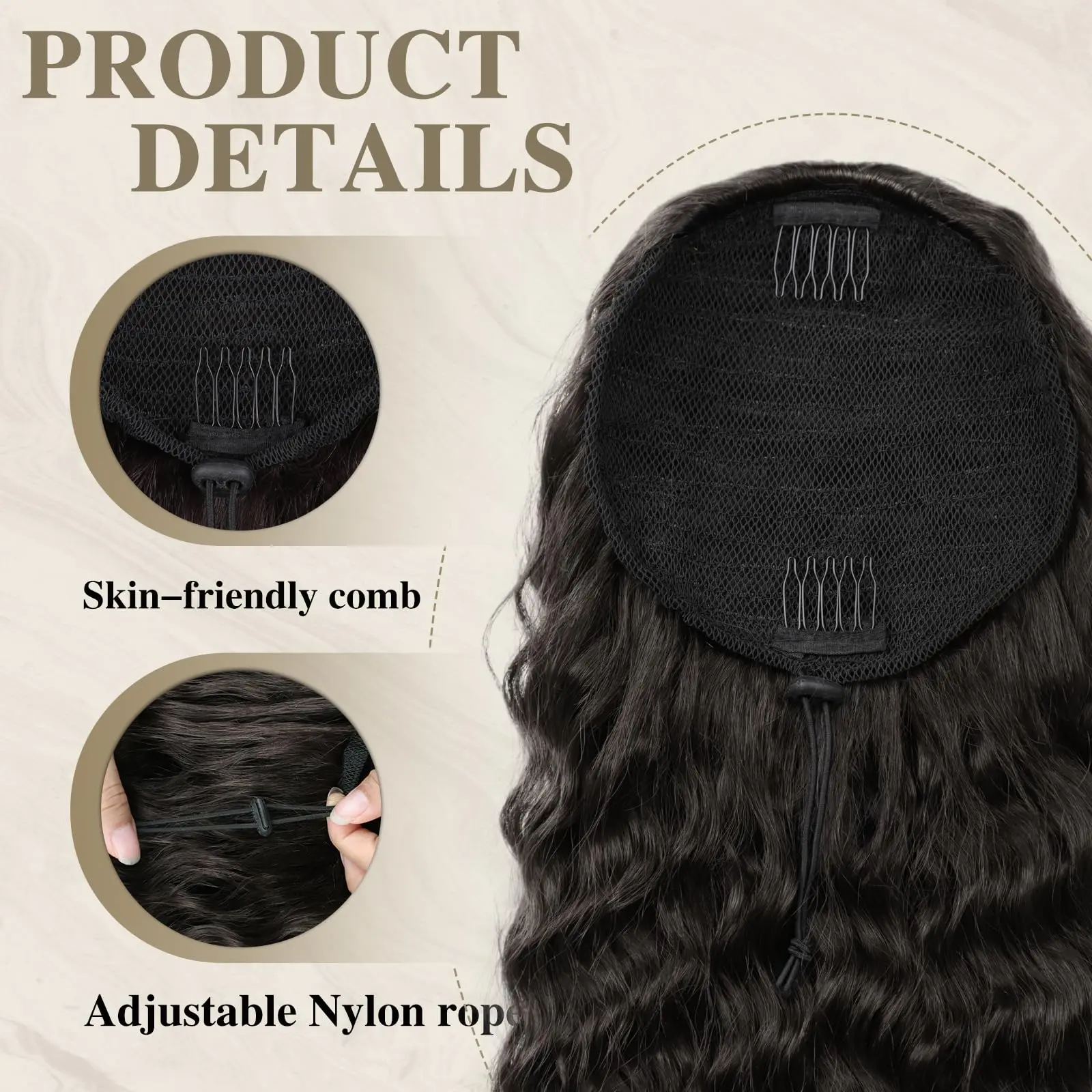 ·【Unique design advantages】: Our curly ponytail extension is more voluminous with a beautiful natural tail.The curvature design makes drawstring ponytail look more fluffy and full. And we have creatively used a special curved sewing alignment with 9 different length levels,when the ponytail droops, the hair tail is naturally fluffy and the curve of the ponytail is perfect.