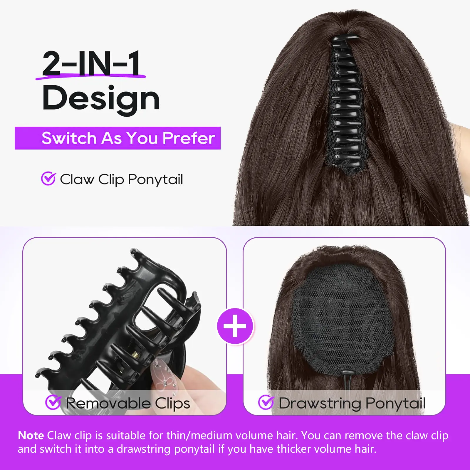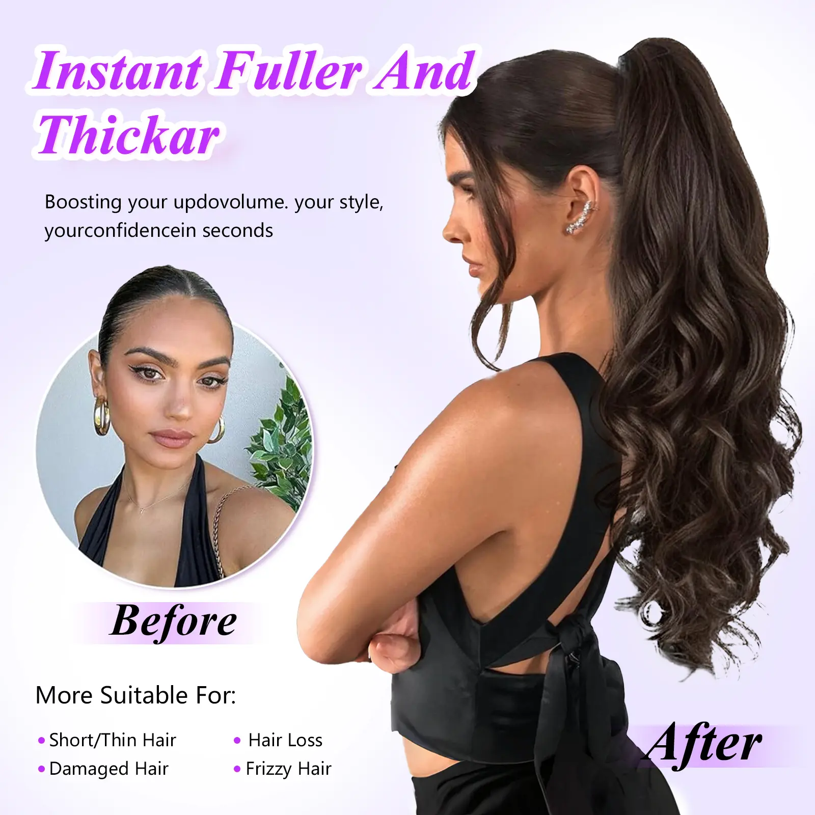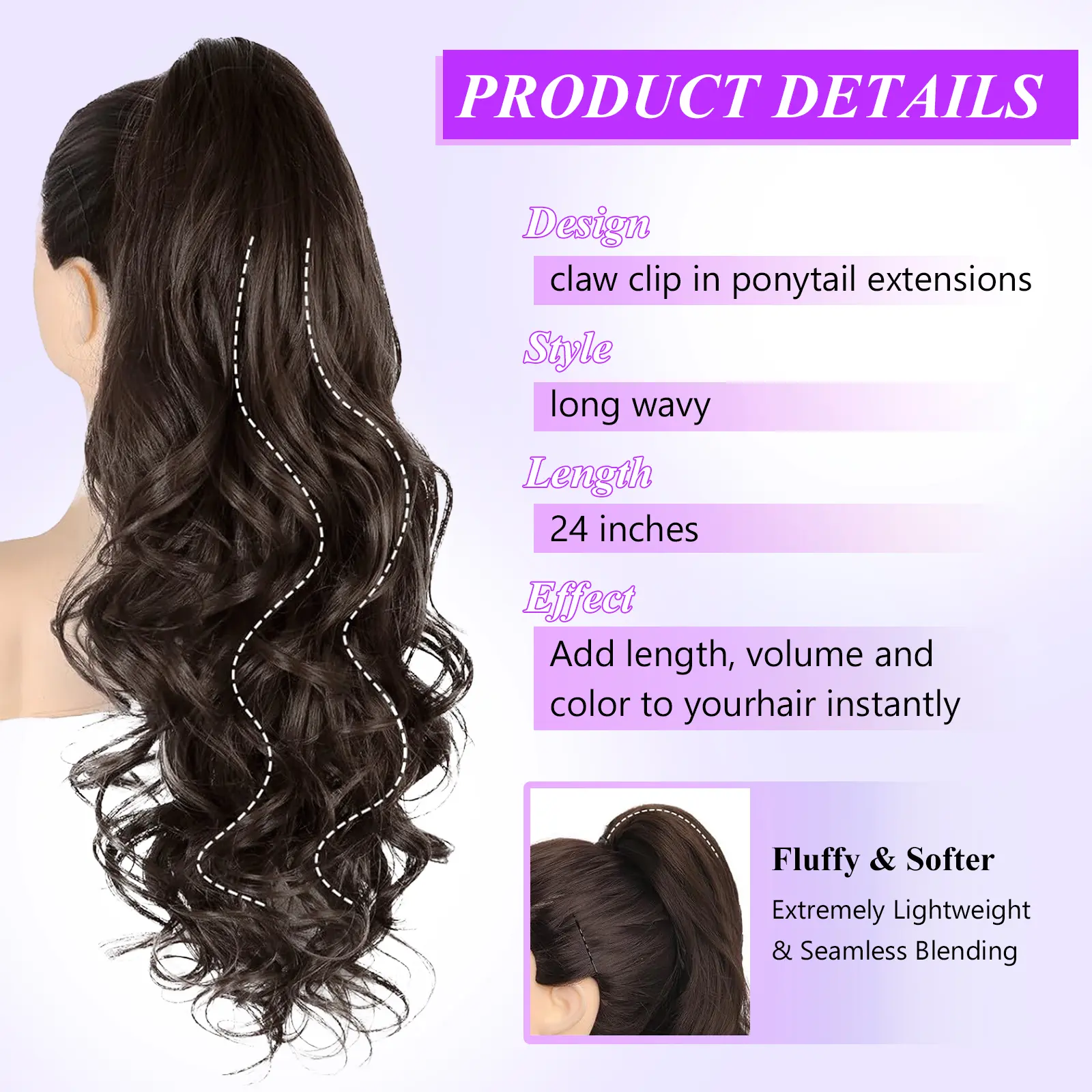 I love this ponytail extension. I get lots of compliments. It stays in my hair even when it is really windy. The black color blends seamlessly with my hair, and it feels soft and natural. Such an easy and affordable way to boost my confidence and switch up my hairstyle in minutes.