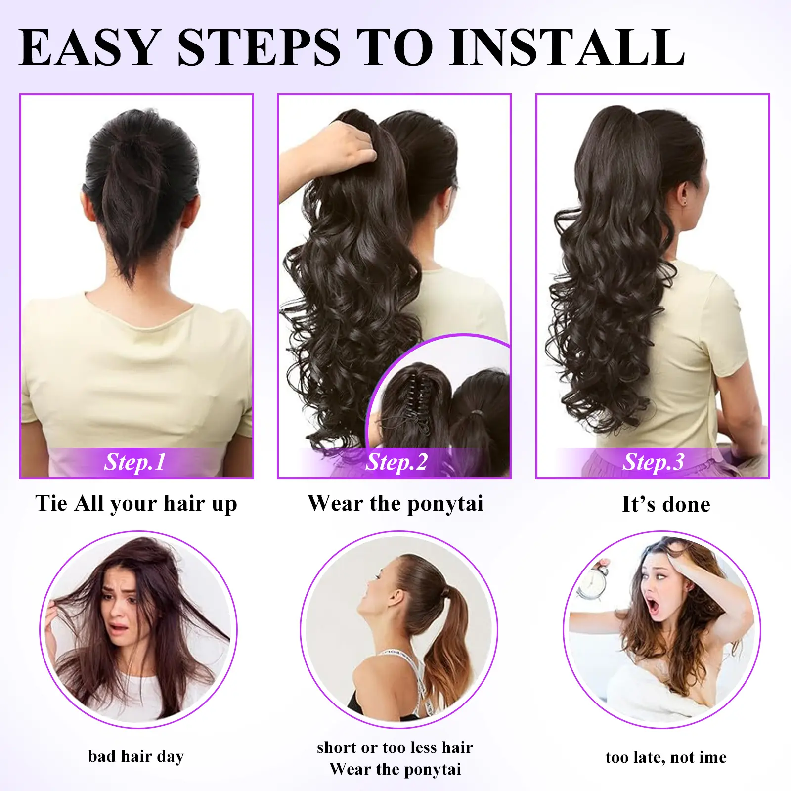 This hair is beautiful! It's quick, easy, and your out the door looking fabulous! These clawclip ponytails elevate any look and are the best quality!
