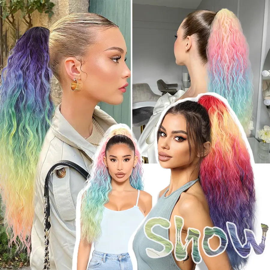 ·Colorful ponytail braid extension: Vibrant and Delight Gradient Colors for Instant Highlights for Girls