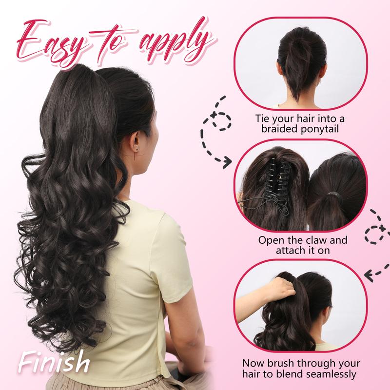 ·【Fluffy, Natural and Soft】The 24" Long Wavy Ponytail Extension are made of high-quality synthetic fibers, which make the ponytail extensions look very natural, soft and fluffy. After receiving the package, take out the ponytail, shake it left and right, front and back, and spray some water or conditioning liquid to achieve a full and fluffy effect.