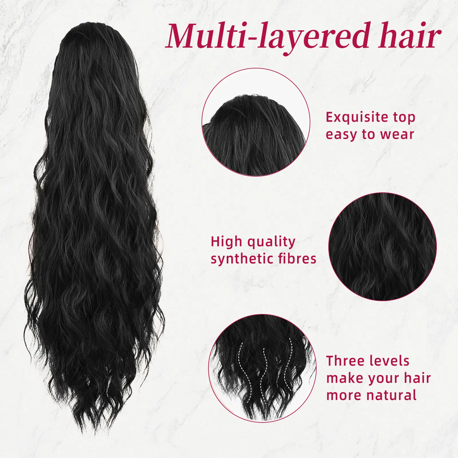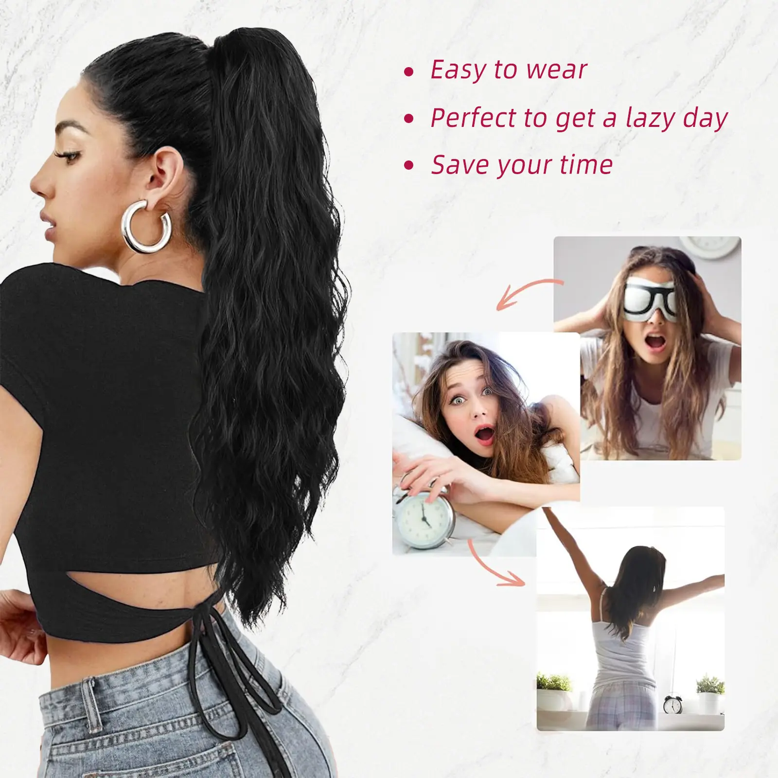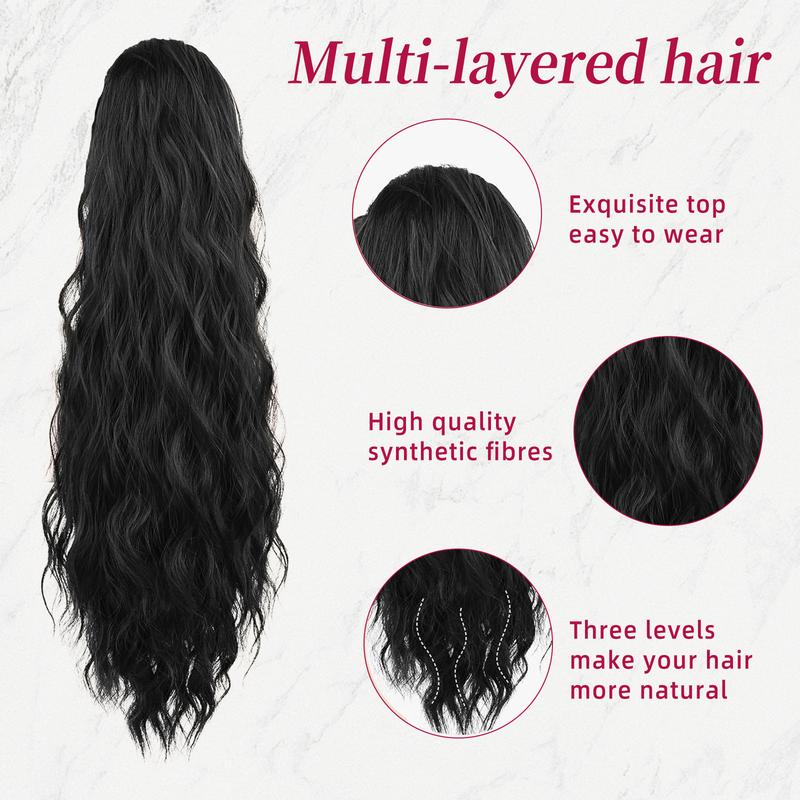 [Easy-to-Use]: At 180g 26 inches .Achieve a fabulous ponytail in no time with our Clawdesign. Simply gather your hair, secure it with the Claw, and you're ready to go! The Claw ensures a secure hold, keeping your ponytail in place throughout the day. It is comfortable to wear, allowing you to rock your new hairstyle with confidence.