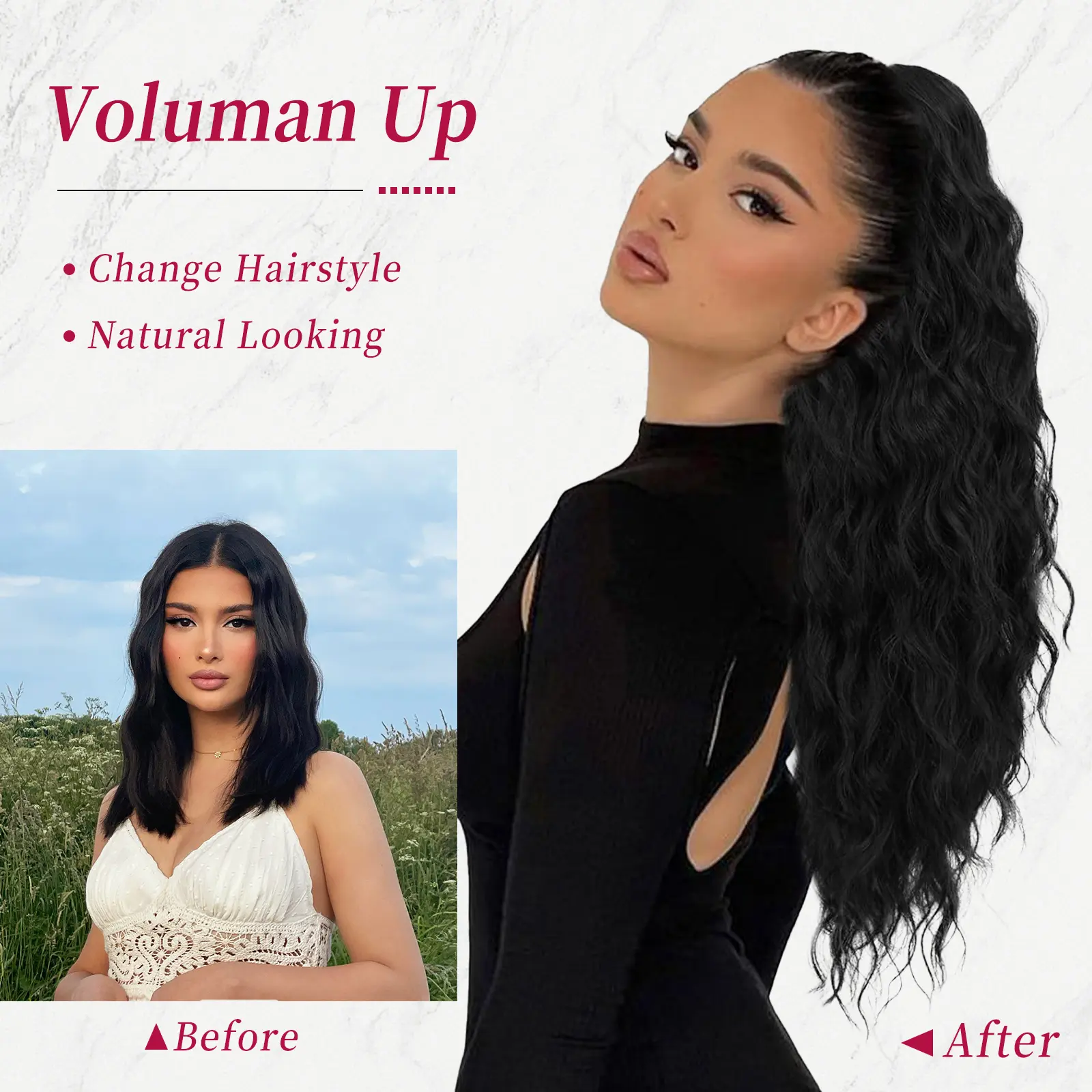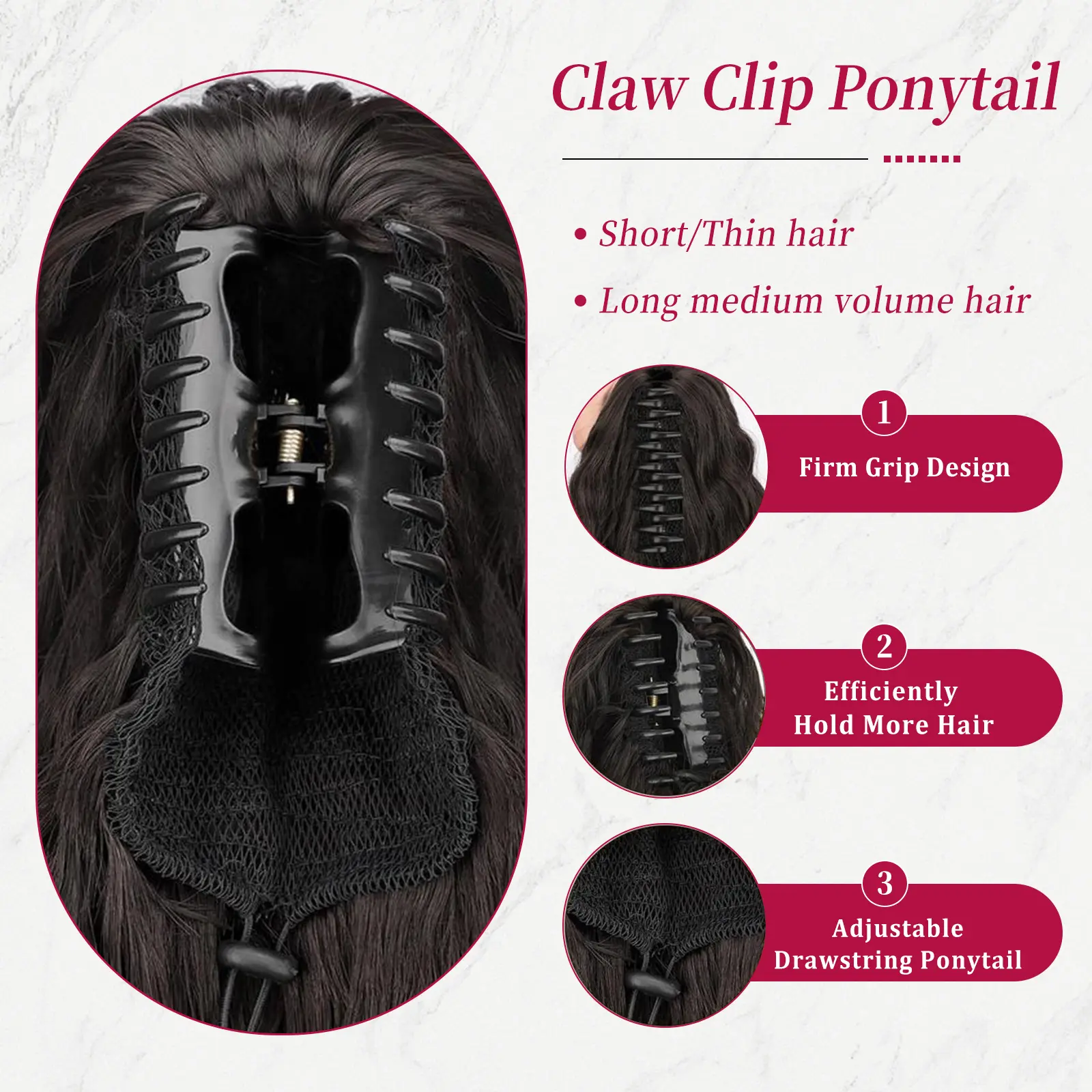 [Natural Look and Feel]: Made from high-quality synthetic hair, our Claw ponytail blends seamlessly with your natural hair. It provides a natural look and feels soft to the touch. The Claw allows you to adjust the tightness of the ponytail, ensuring a perfect fit for any head size or hair thickness.