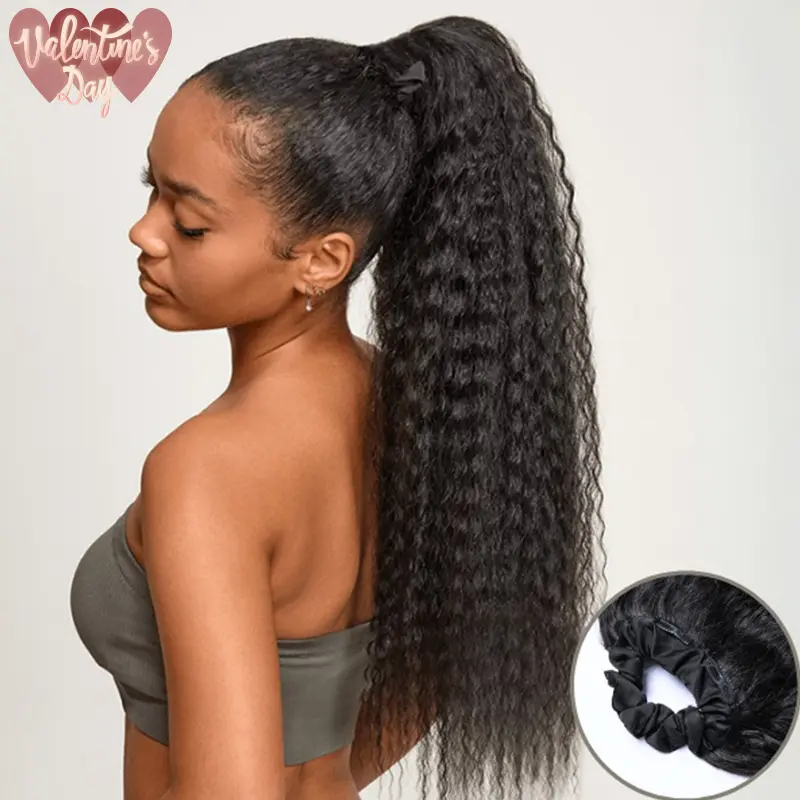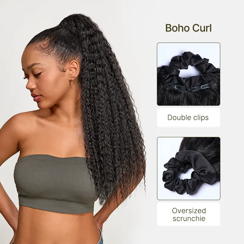 Marketing is very misleading with the scrunchie ponytail. The scrunchie is way too big and hard. It doesn’t stay on and the comb is massive and it’s not cohesive at all as far as the design of it. The hair is nice, but I do not recommend this product. A waste of money…