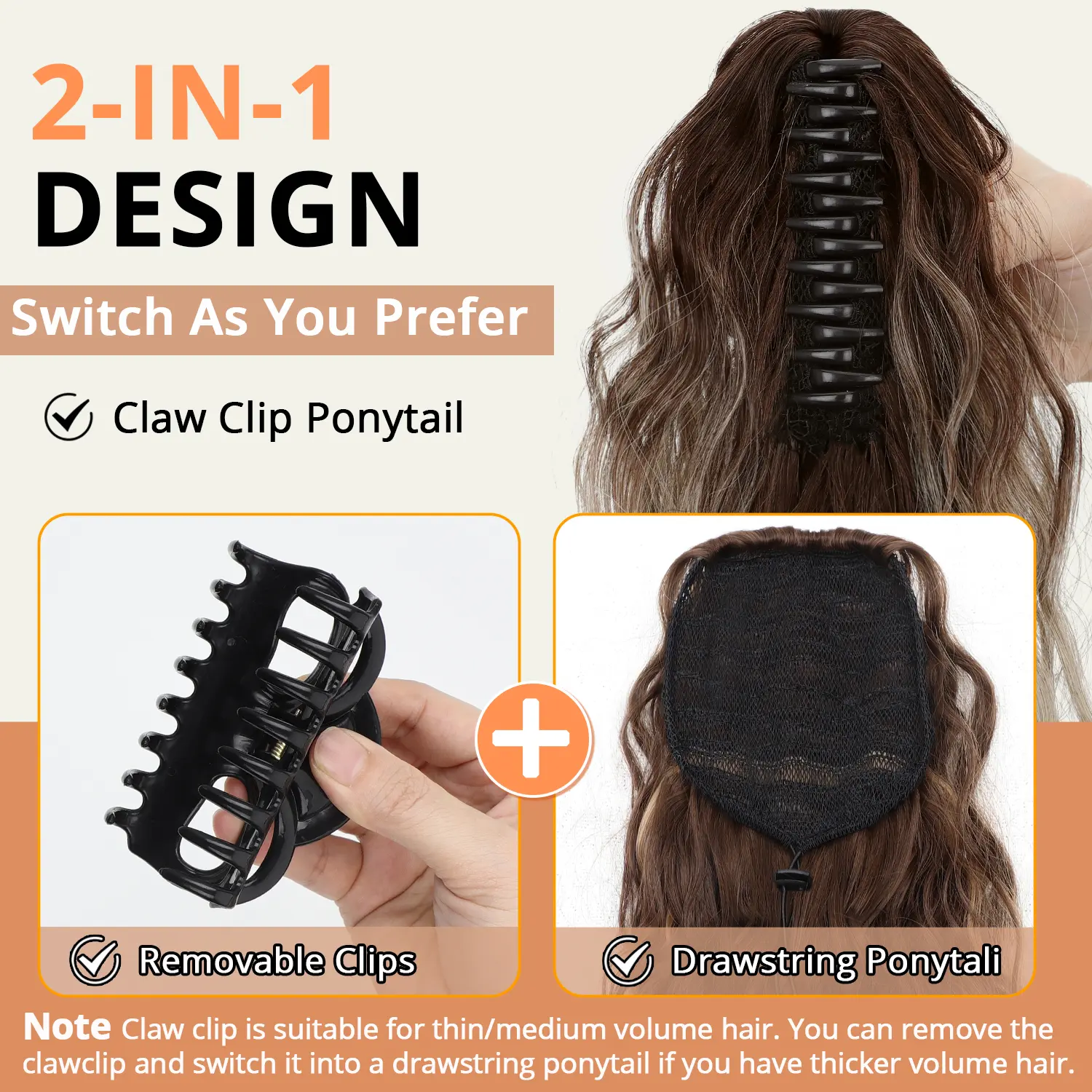 This clip on ponytail works great! Hair color is so close to my own, you cannot tell. Hubby loves it too. It’s very soft and lightweight, and mimics my waves and curls. Also the claw clip is so easy to put one, and it's my go to hairpiece now. Love it so much!