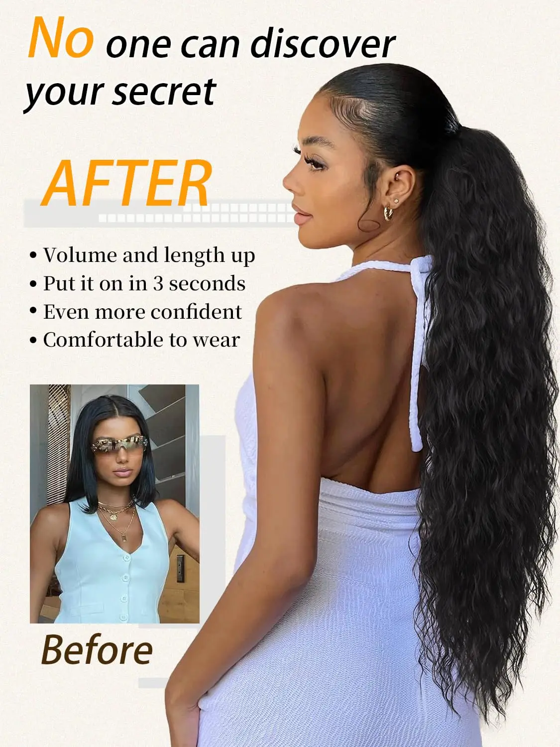·【Material Introduction】Our ponytail extensions is made of premium synthetic fibers. Soft to the touch and layered curls, giving you instantly full and voluminous long hair. 30 inch wavy Weight: 160g.