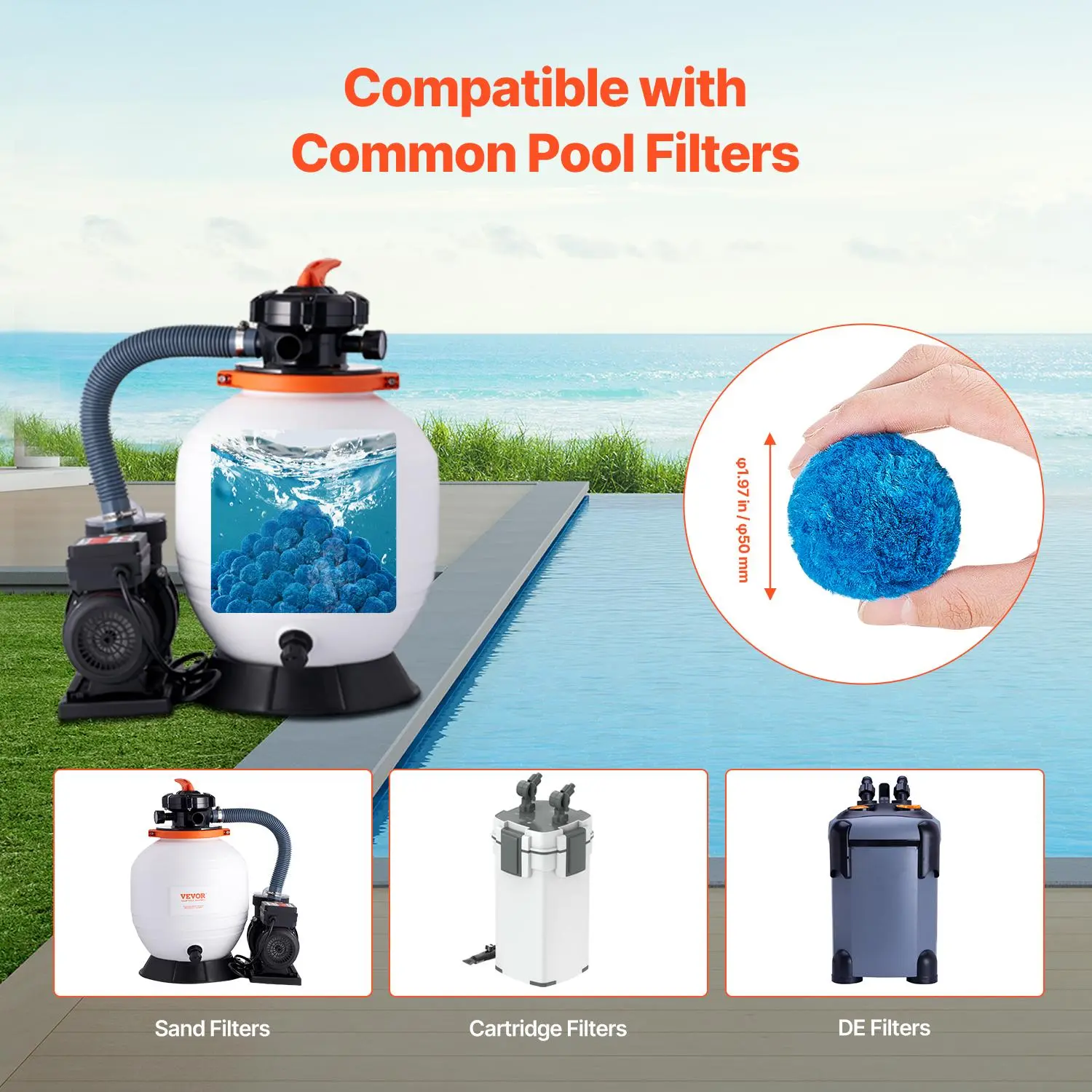 • High Compatibility: Our pool filter balls are compatible with a variety of common filter systems, including sand filters, cartridge filters, and DE filters, ensuring seamless performance across multiple setups.