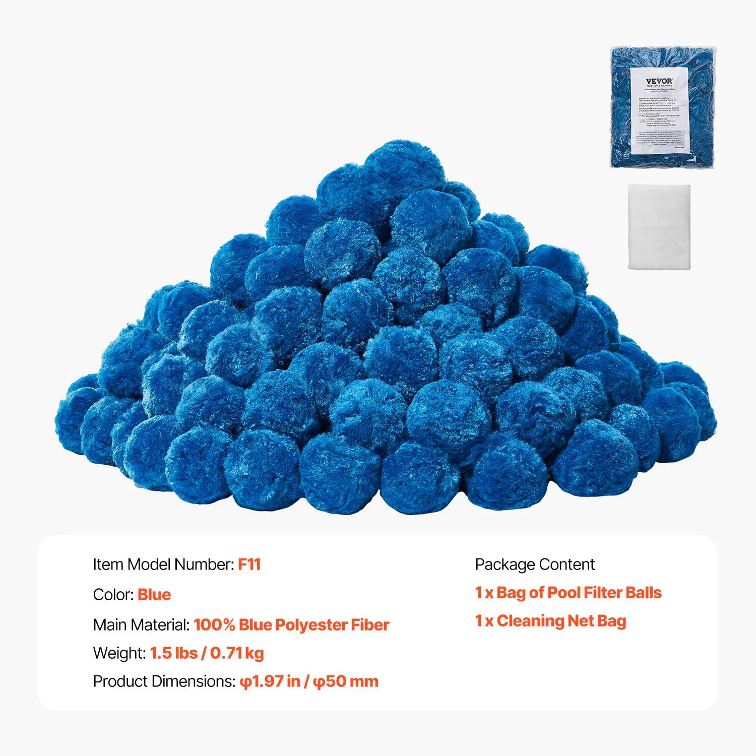 5. VEVOR Pool Filter Balls for Sand Filter, 1.5 lbs, Filter Balls Replace Pool Filter Sand, Reusable Blue Polyester Fiber Filter Media with Wash Bag, for Swimming Pool Aquarium Tank Above Ground Pool