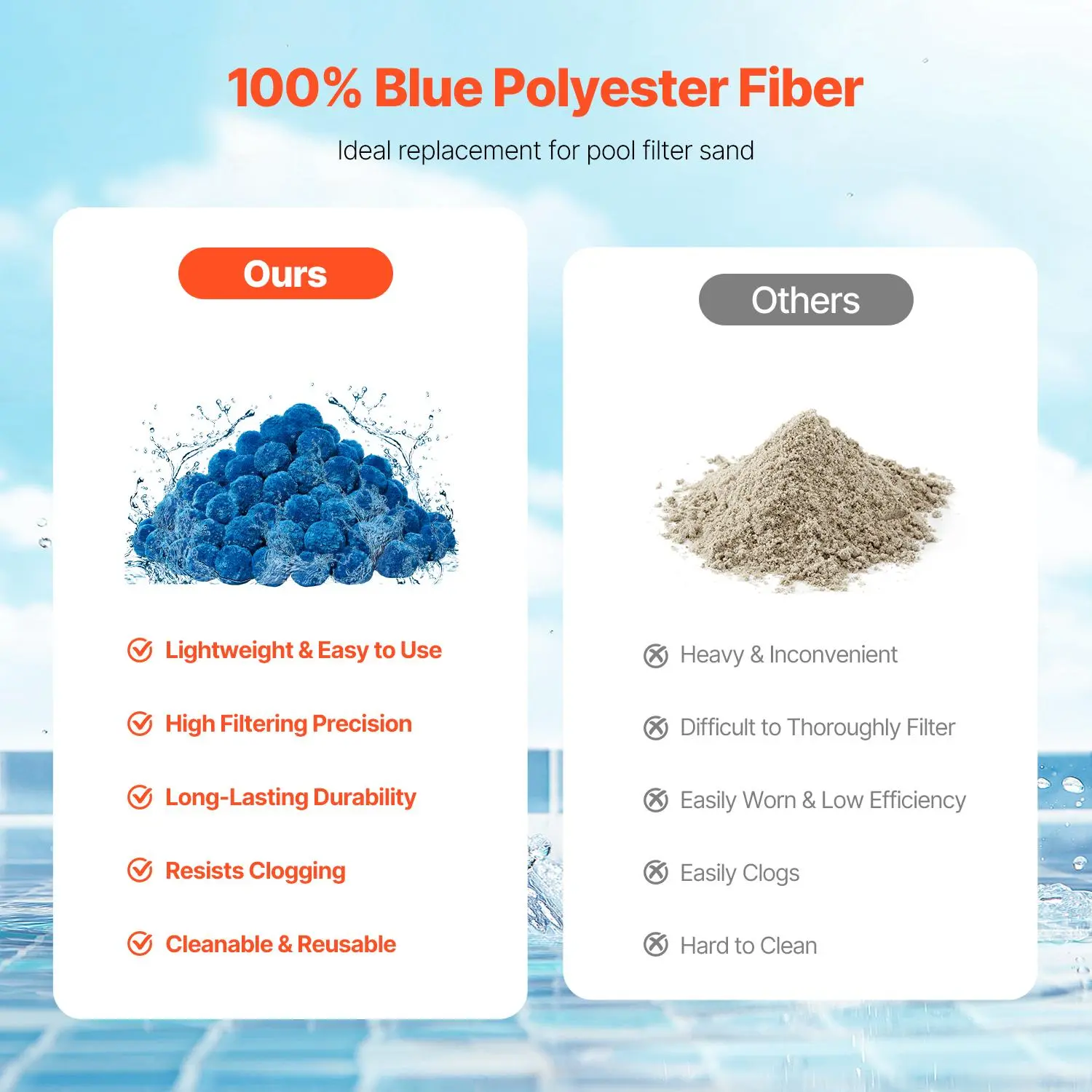 • Premium Material: Crafted from 100% blue polyester fiber, our pool filter balls for sand filter provide high filtration strength, fast filtration speed, long service life, and minimal wear. Lightweight and reusable, they are the ideal replacement for traditional sand filters. Enjoy superior filtration performance with every use.
