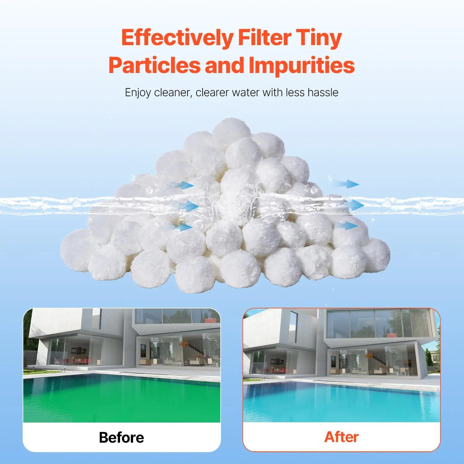 • High Compatibility: Our pool filter balls are compatible with a variety of common filter systems, including sand filters, cartridge filters, and DE filters, ensuring seamless performance across multiple setups.
