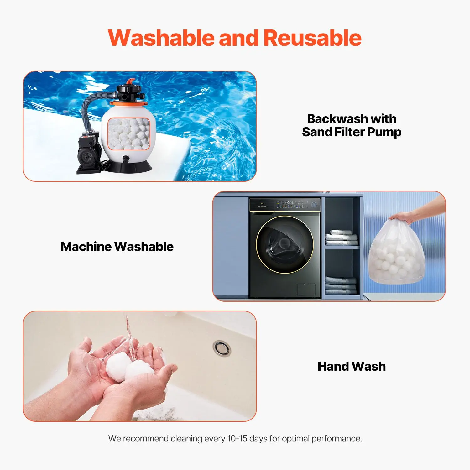 • Easy to Maintain: Our pool filter balls for sand filter support sand filter pump backwashing and can be easily machine or hand washed for easy upkeep. Reusable and durable, they help reduce unnecessary maintenance costs, providing a hassle-free filtration solution.